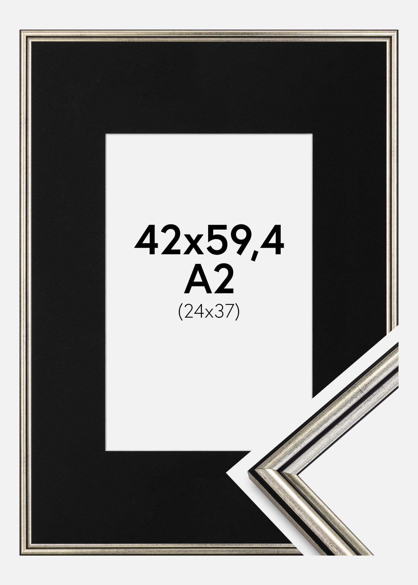 Rama Horndal Srebrny 42x59,4 cm (A2) - Passe-patrout Czarny 25x38 cm
