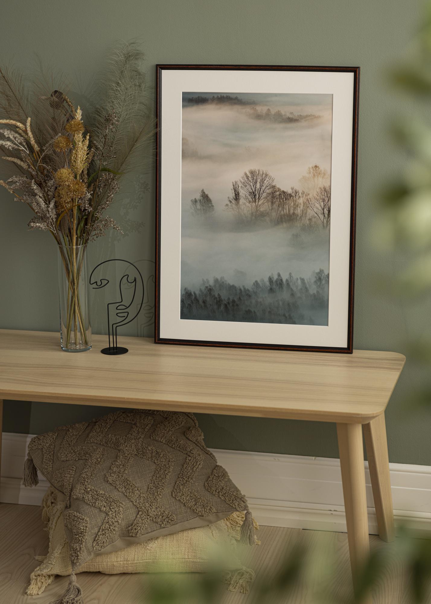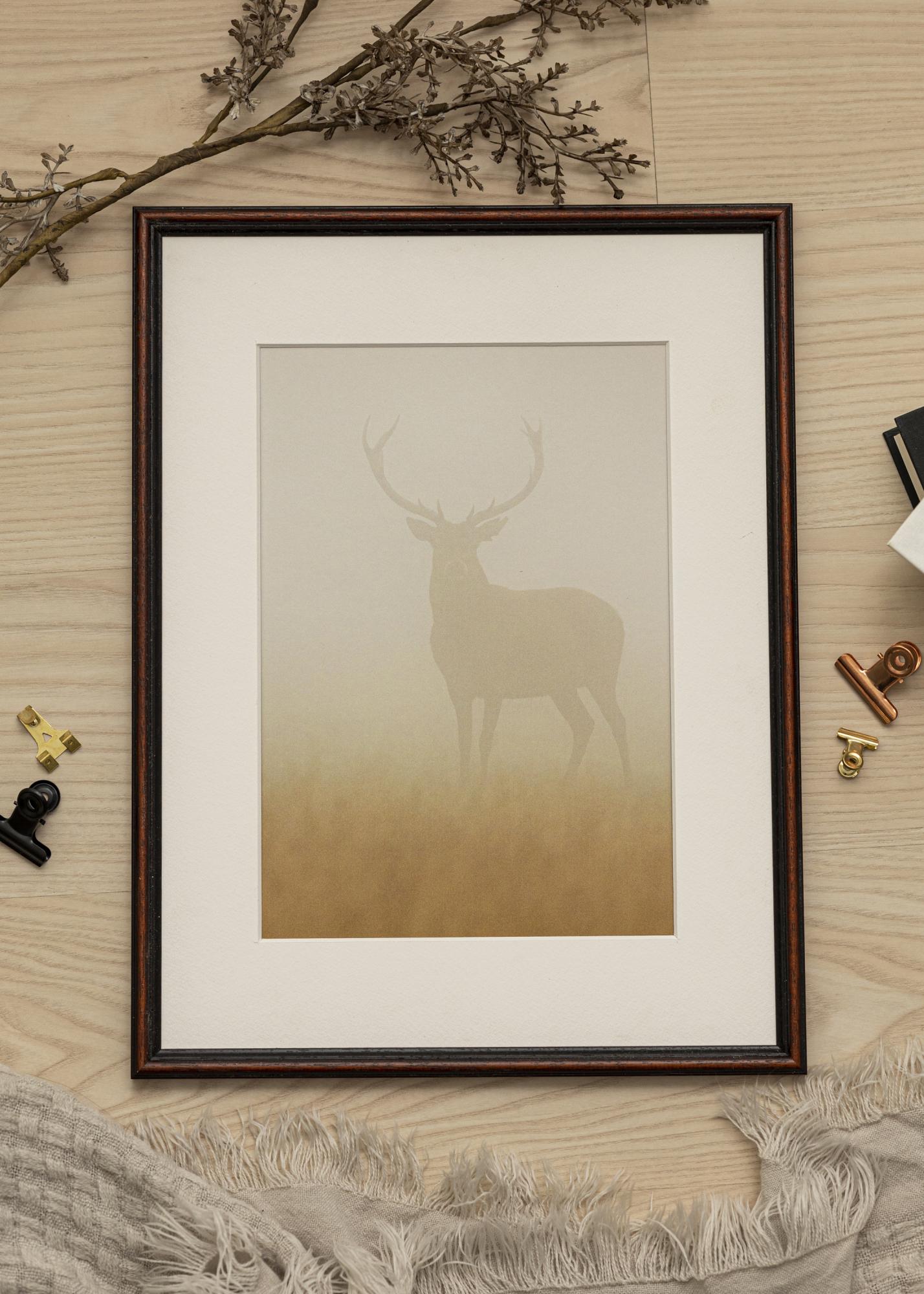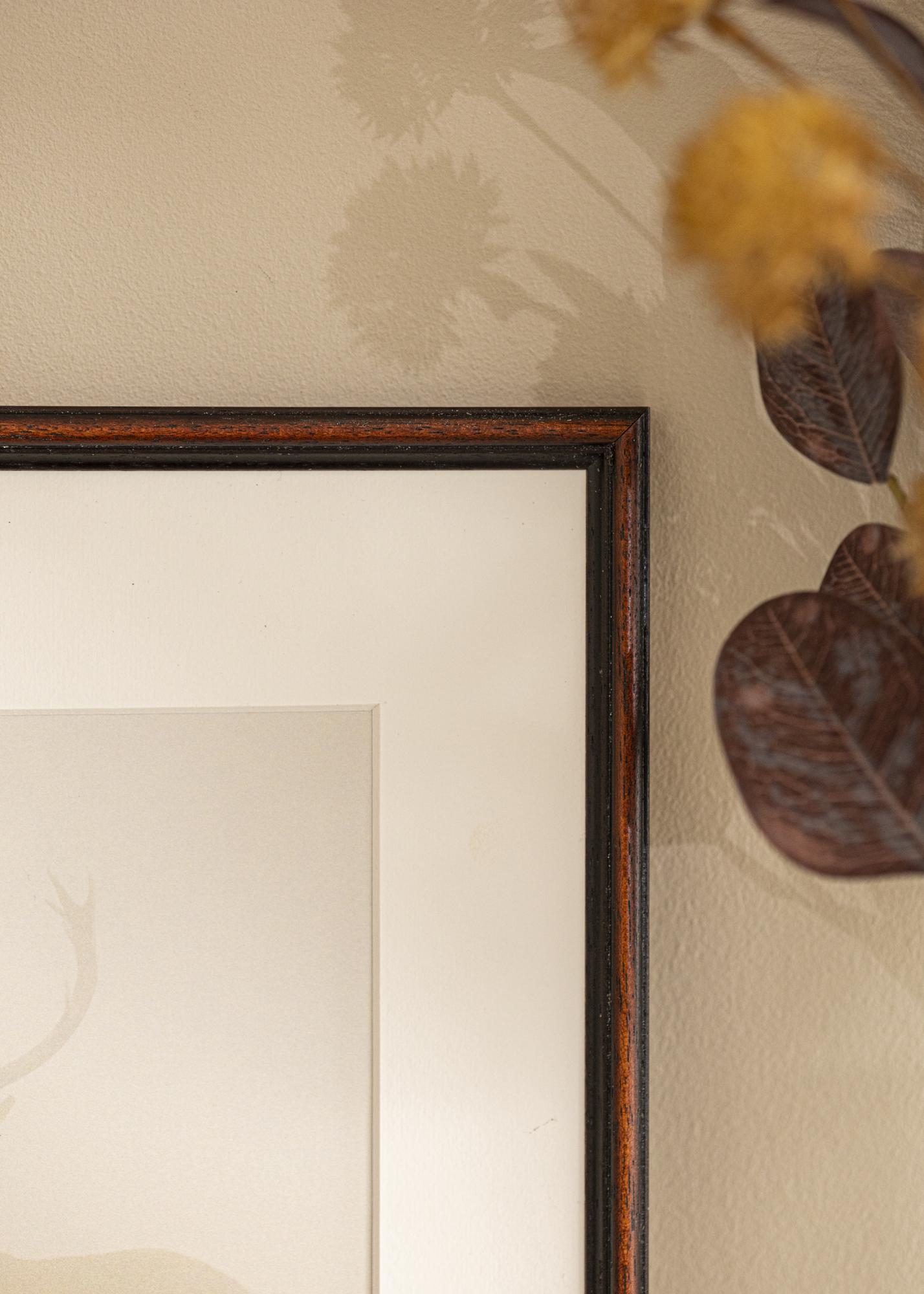 Wykonana w Szwecji z drewna ayous, ta ramka łączy trwałość ze stylem. Posiada matowe wykończenie, które uzupełnia ciepły wzór orzecha włoskiego i nadaje wyrafinowany wygląd. Szerokość listwy ramki wynosi 15 mm, a głębokość 14 mm, co daje dyskretne, ale wyraźne wrażenie dla Twojego oprawionego obrazu.