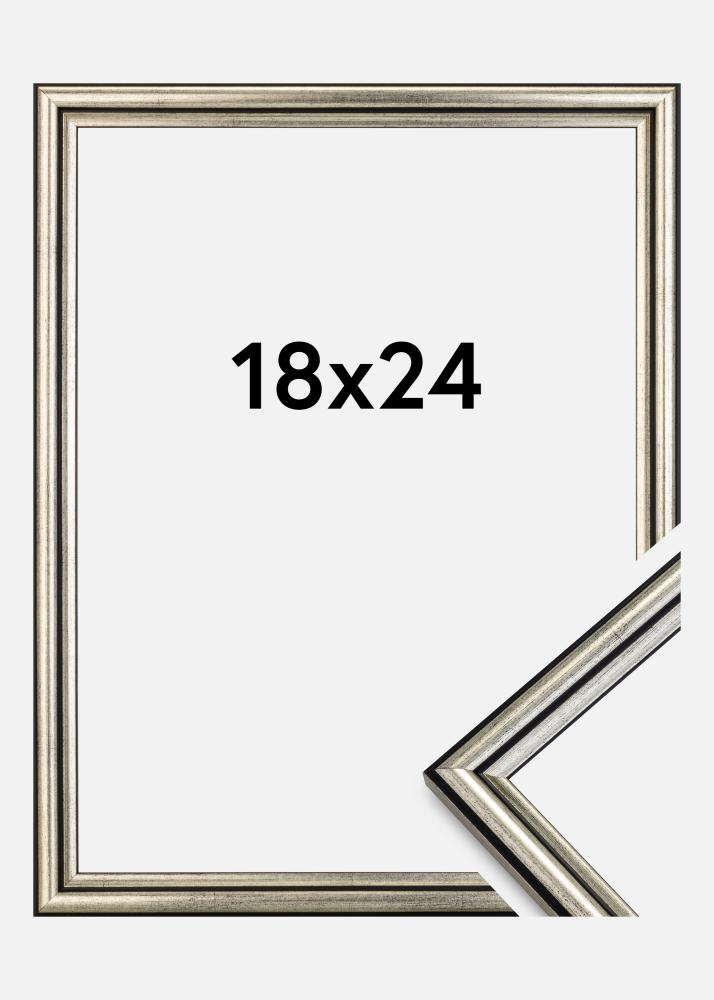 Odkryj elegancję prostoty z naszą srebrną ramką o wymiarach 18x24 cm, stylową ramką na obrazy, która uzupełnia Twoje ulubione zdjęcia lub dzieła sztuki. Projekt ramy jest unikalny dzięki czarnym plamkom i czarnym liniom, które nadają wyrafinowany wygląd. Z listwą ramy o szerokości 15 mm i głębokości 14 mm, ta ramka tworzy wyraziste obramowanie wokół Twojego motywu.