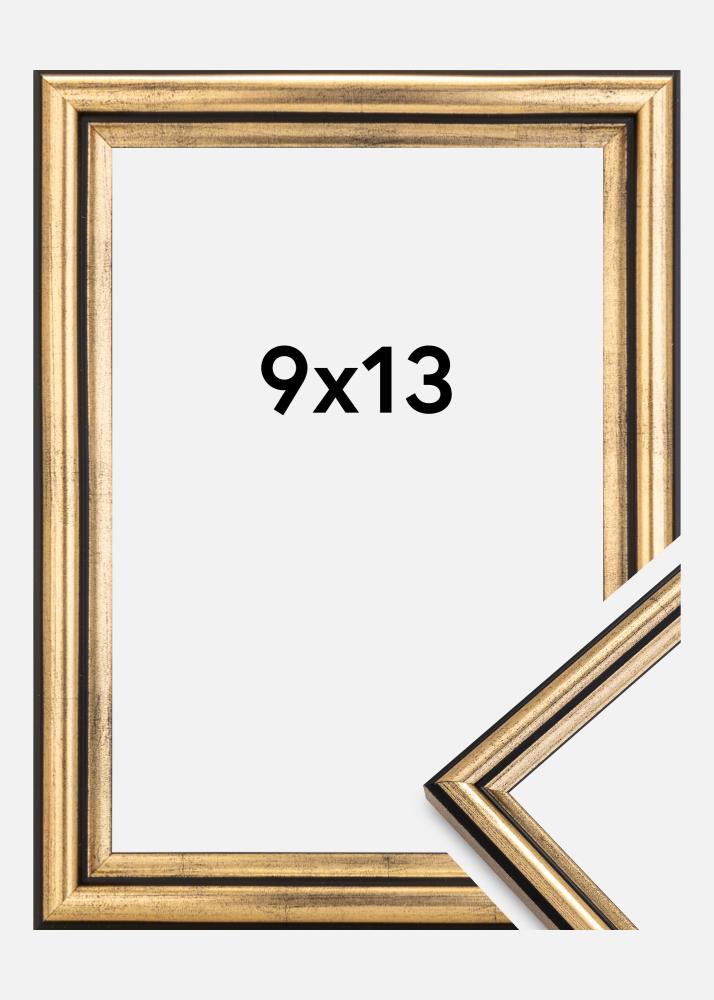 Dodaj swoim ulubionym zdjęciom luksusową ramkę w stylu retro, która doda blasku Twojemu domowi. Horndal to szwedzka rama o złotym kolorze z czarnymi plamkami i matowym wykończeniem. Czarnoplamkowy odcień sprawia, że rama ma bardziej dyskretną prezencję, co pozwala skupić uwagę na obrazie. Listewka ramy wykonana jest z malowanego drewna ayos i ma cienką i elegancką szerokość zaledwie 15 mm.