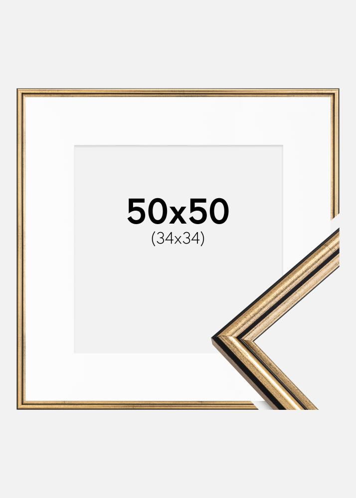Rama Horndal Złoty 50x50 cm - Passe-patrout Biały 35x35 cm