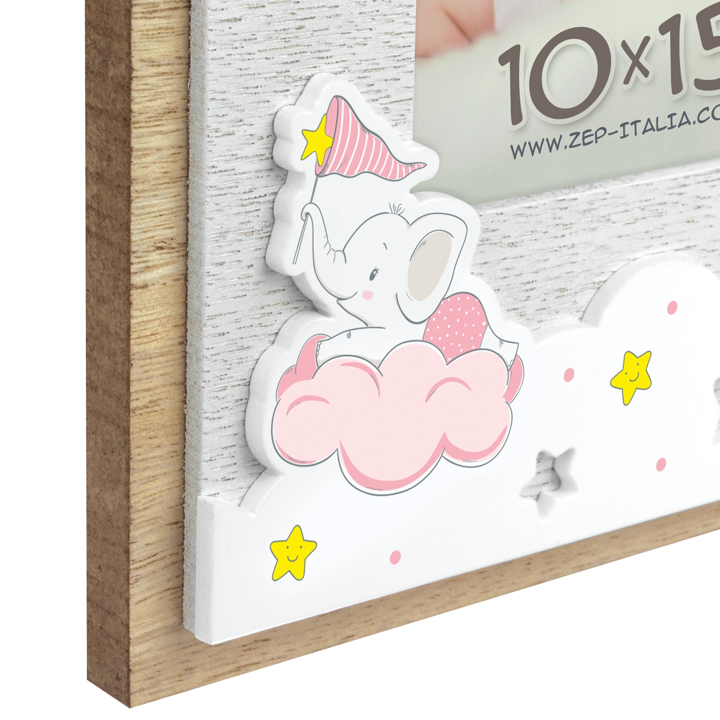 Przekształć swój dom w osobistą galerię na ścianie dzięki tej uroczej ramce na zdjęcia, która podkreśla małe chwile w życiu. Z wymiarami 10x15 cm jest idealna do zachowania wspomnień o najmłodszych. Ta ramka na obrazy zdobiona jest uroczym motywem dziecięcym, w tym słodkim słoniem, różowymi wzorami i małymi gwiazdkami, które razem tworzą ciepłą i miłującą atmosferę.