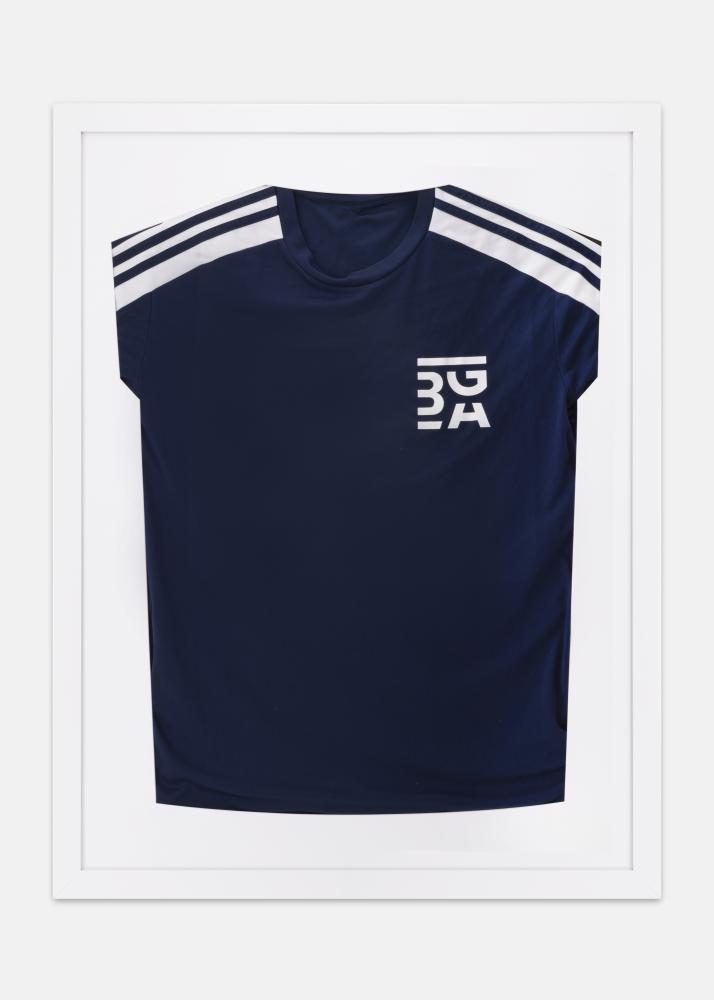 Klasyczna biała ramka z białym tłem sprawia, że koszulka sportowa ulubionej drużyny staje się centralnym punktem i tworzy stylowy element dekoracyjny na ścianie.