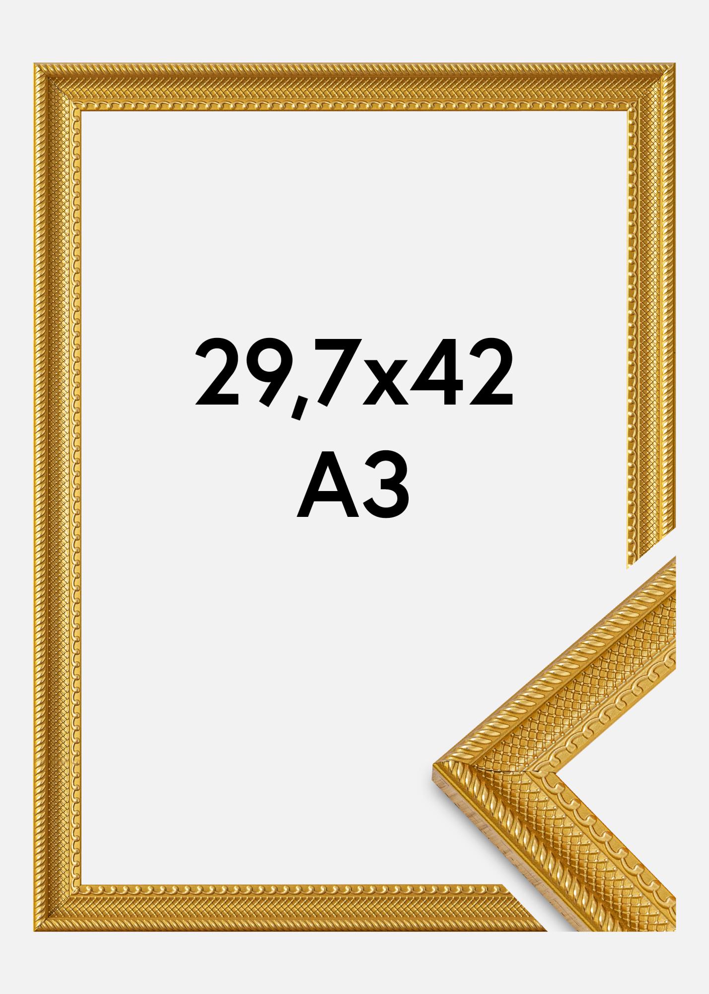 Ta elegancka ramka na zdjęcia w kolorze złotym jest doskonałym połączeniem klasycznego designu i nowoczesnej funkcjonalności. Ze swoimi szczegółowymi wzorami wzdłuż krawędzi, wprowadza luksusowy akcent, który podkreśla każde dzieło sztuki lub zdjęcie. Ramka wykonana jest z materiału kompozytowego, co zapewnia jej solidną i trwałą strukturę. Jest zaprojektowana do dopasowania do motywów o rozmiarze 29,7x42 cm (A3), co czyni ją idealną do stylowego przedstawienia twoich ulubionych wspomnień.