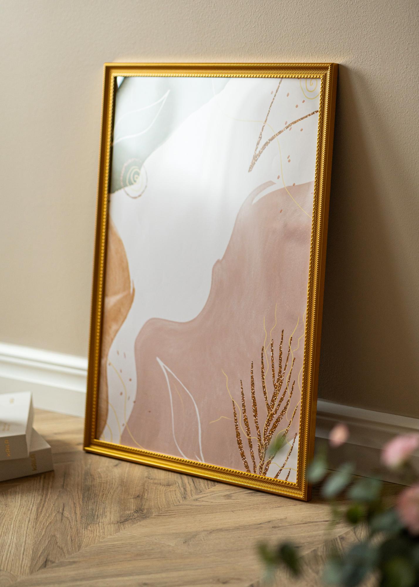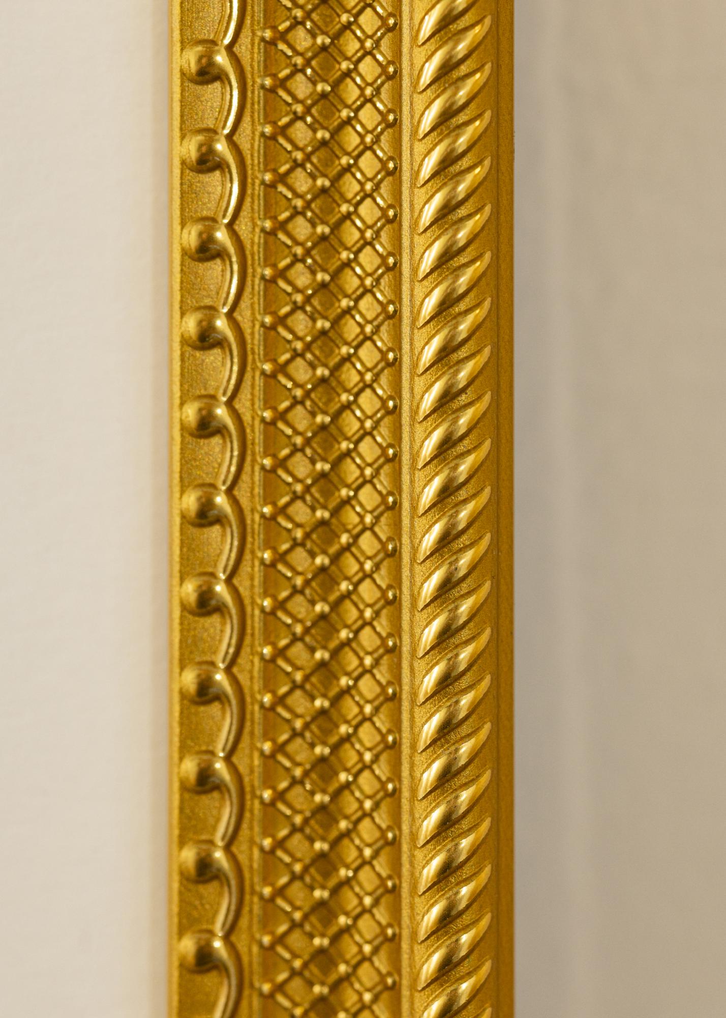 Ta elegancka ramka na zdjęcia w kolorze złotym to doskonałe połączenie klasycznego designu i nowoczesnej funkcjonalności. Dzięki swoim szczegółowym wzorom wzdłuż krawędzi i błyszczącemu wykończeniu, nadaje luksusowy wygląd, który podkreśla każde dzieło sztuki lub fotografię. Ramka jest wykonana z materiału kompozytowego, co zapewnia jej zarówno wytrzymałość, jak i lekkość. Jest zaprojektowana tak, aby pasować do motywów o rozmiarze 40x50 cm, co sprawia, że jest idealna do prezentacji twoich najbardziej ukochanych wspomnień.