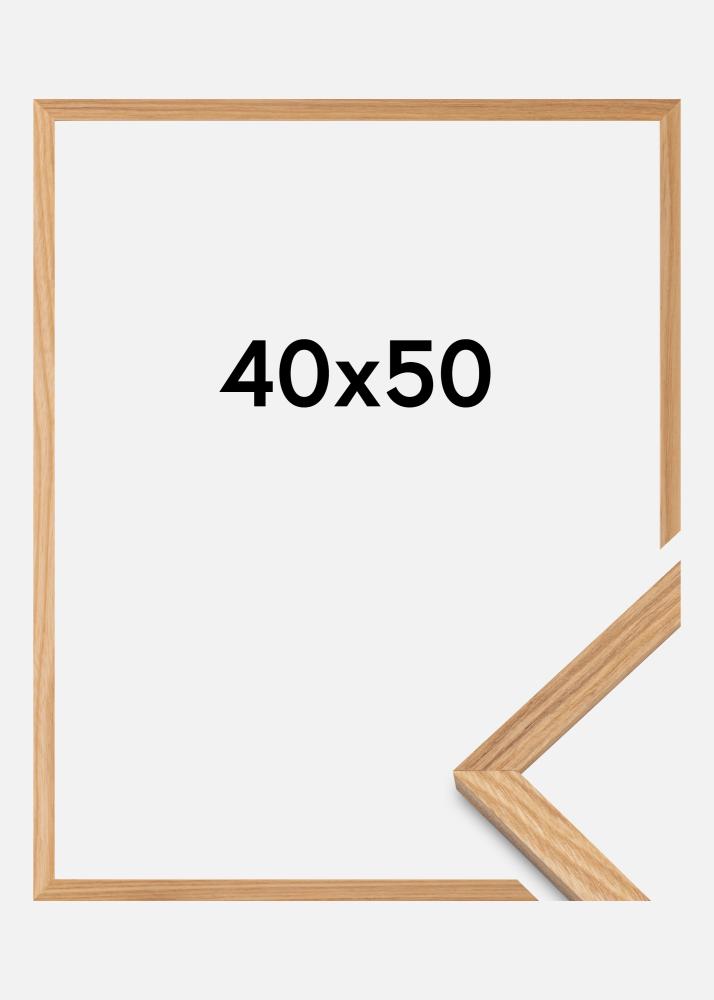 Ramka jest zaprojektowana do pasowania na motywy w rozmiarze 40x50 cm, co daje dużo miejsca na wyeksponowanie ulubionych zdjęć. Z listwą o szerokości 14 mm i głębokości 18 mm, ta ramka na obraz oferuje solidną i stabilną konstrukcję. Piękne usłojenie dębu nadaje każdej ramce unikalny i żywy charakter, co czyni każdy egzemplarz wyjątkowym.