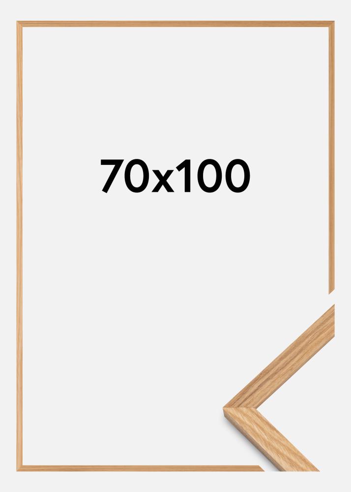 Ramka jest zaprojektowana tak, aby pasowała do obrazków o wymiarach 70x100 cm, co czyni ją idealną dla większych fotografii lub dzieł sztuki. Ma listwę ramową o szerokości 14 mm i głębokości 18 mm, co zapewnia stabilne i solidne odczucia. Piękne usłojenie dębu nadaje każdej ramce unikalny i żywy charakter.