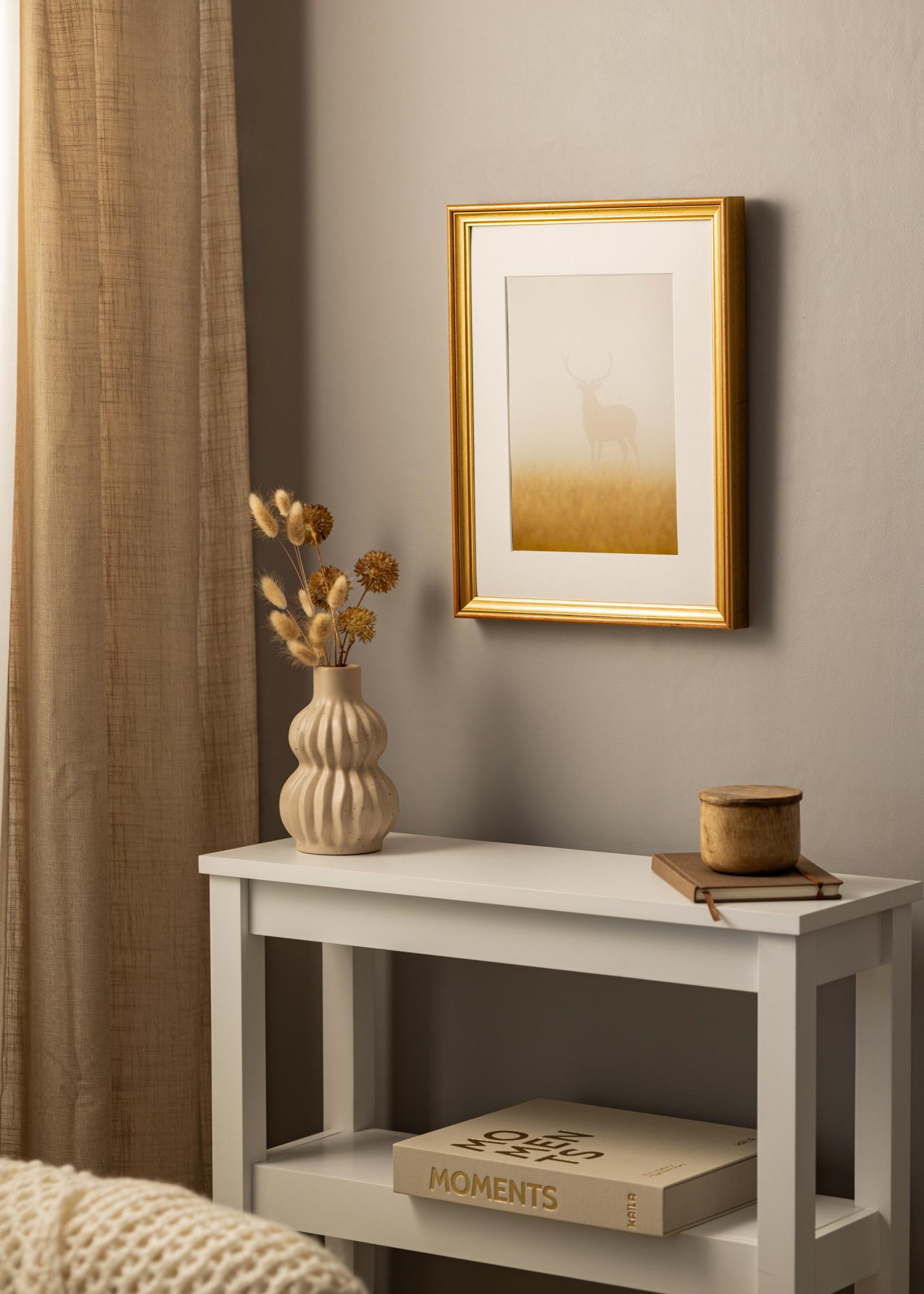 Ramka Loki Złota jest elegancką i klasyczną ramką na zdjęcia, która nadaje Twoim dziełom sztuki i fotografiom wyrafinowaną oprawę. Dzięki smukłemu profilowi i subtelnym patynowanym detalom, ta złota ramka oferuje ponadczasowy charakter, który doskonale pasuje zarówno w nowoczesnych, jak i tradycyjnych wnętrzach. Złota powierzchnia ma lekkie antyczne wykończenie z niewielkimi ciemnymi detalami, co wzmacnia jej elegancki wygląd i tworzy poczucie głębi i historii.