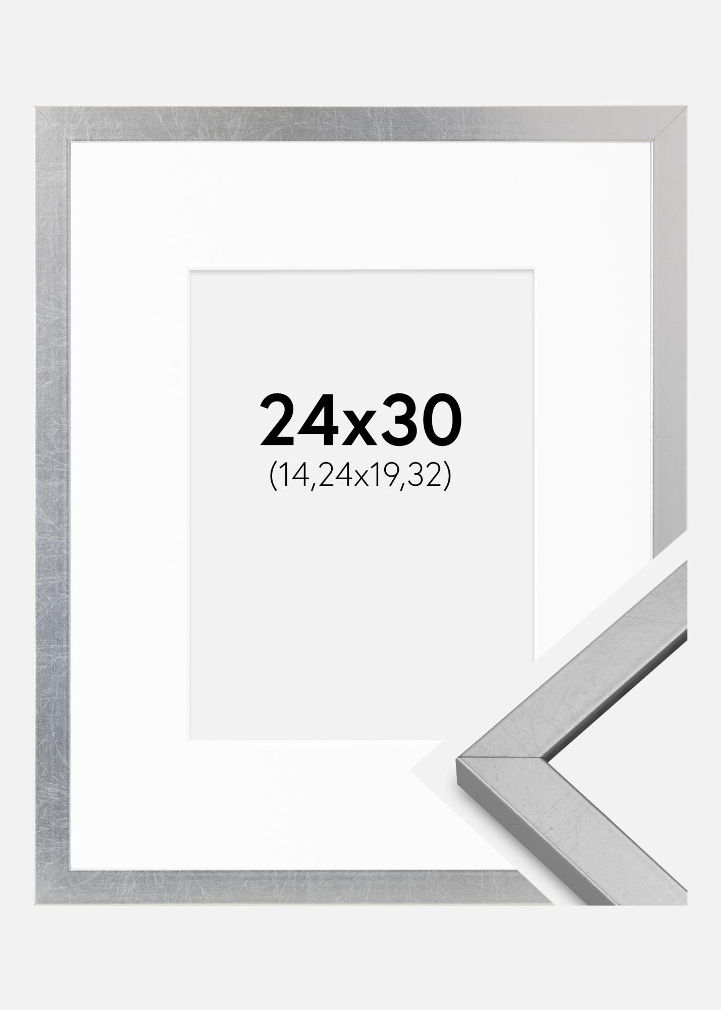 Ramka Minerva Srebrny 24x30 cm - Passe-partout Biały 6x8 cali