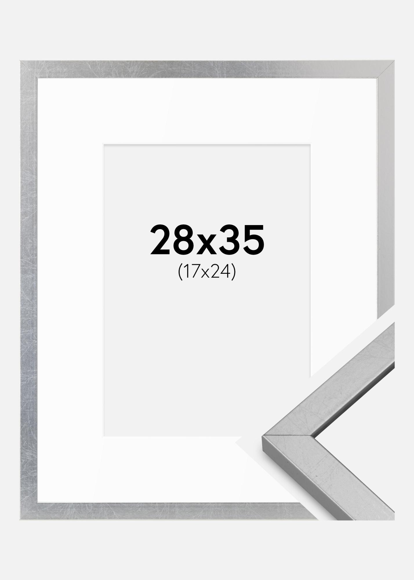 Ramka Minerva Srebrny 28x35 cm - Passe-partout Biały 18x25 cm