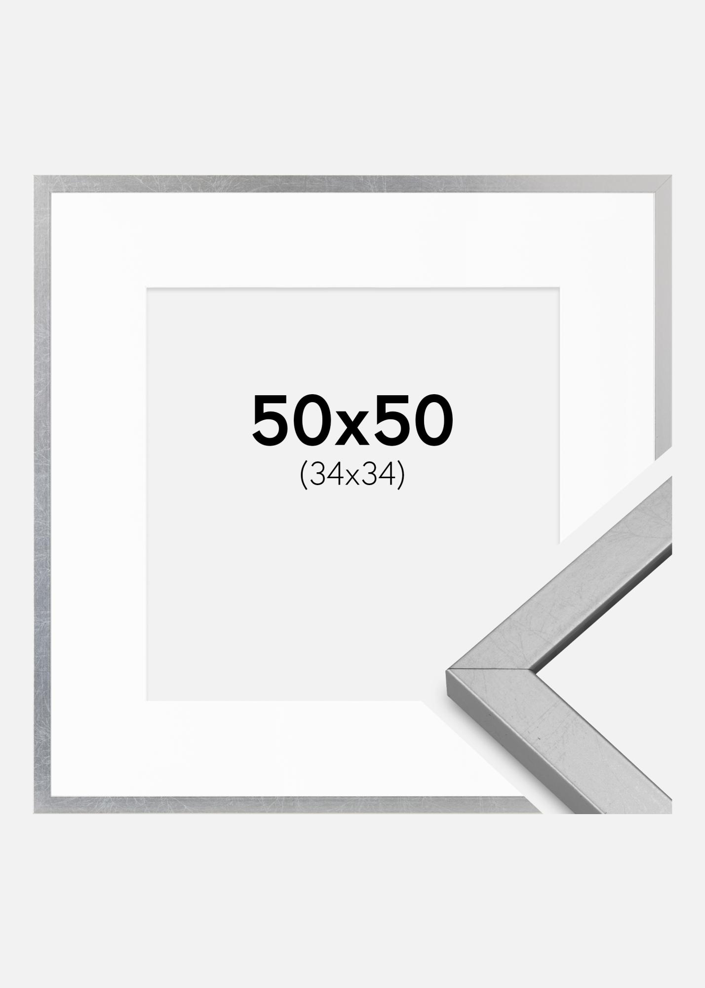 Ramka Minerva Srebrny 50x50 cm - Passe-partout Biały 35x35 cm