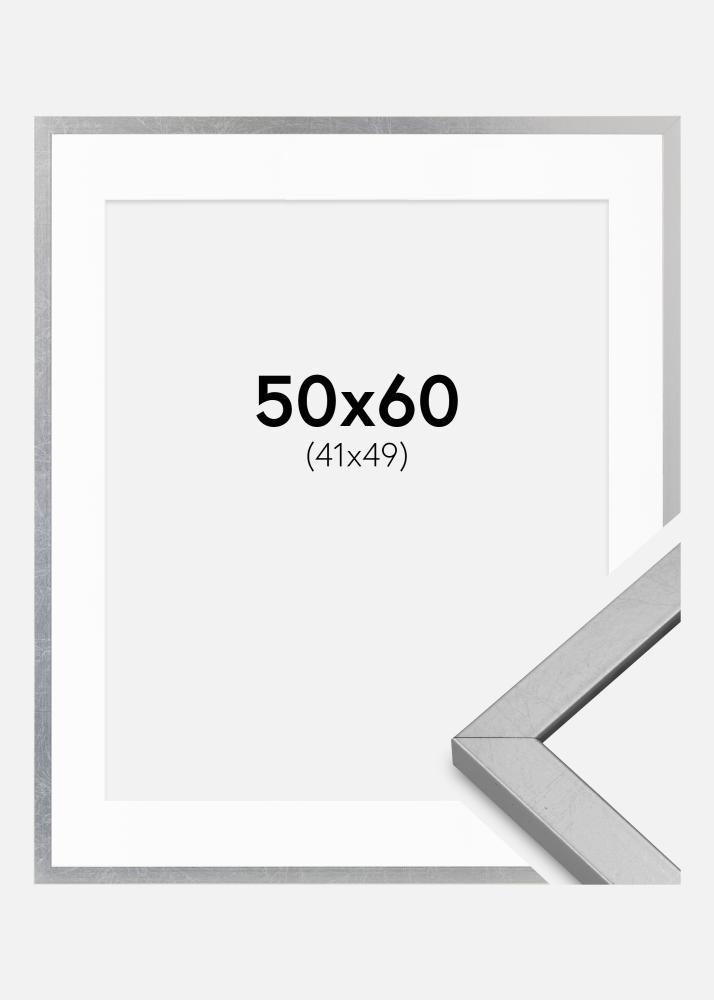 Ramka Minerva Srebrny 50x60 cm - Passe-partout Biały 42x50 cm