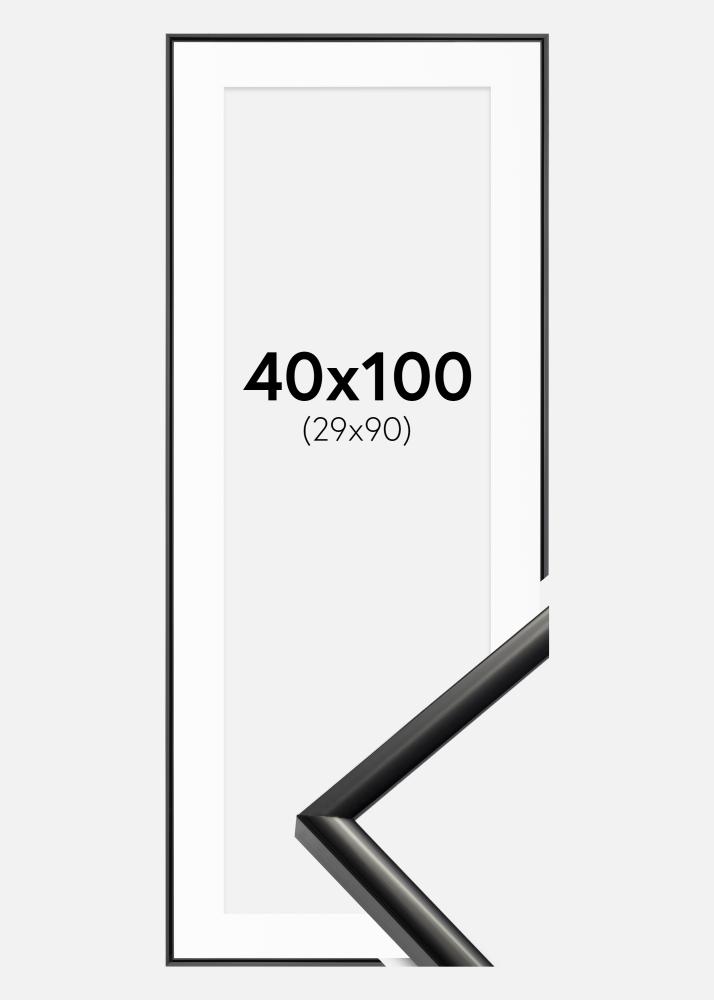Odkryj elegancję i wyrafinowany styl z naszą szykowną czarną ramą, która posiada białą passepartout, podkreślającą Twój obraz o wymiarach 30x91 cm. Smukły profil ramki o szerokości 9,8 mm i głębokości 16,5 mm zapewnia dyskretną, lecz widoczną oprawę Twojego dzieła sztuki lub zdjęcia.