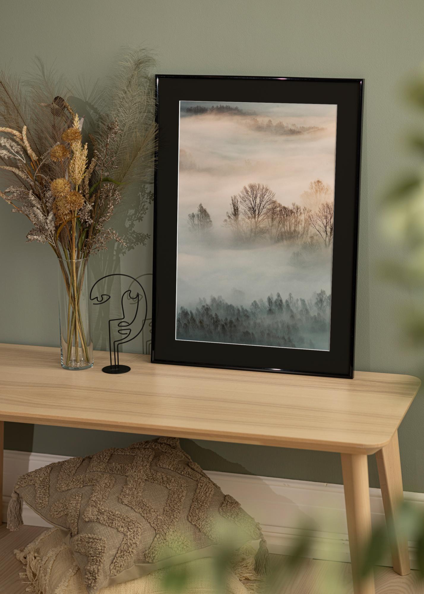 Zaoferuj swoim ulubionym zdjęciom uwagę, na jaką zasługują, dzięki stylowej czarnej ramie, kompletowanej czarnym passepartout. Ta elegancka kombinacja podkreśla twoją fotografię lub dzieło sztuki, tworząc efekt wizualny, który przyciąga wzrok oglądającego. Głębia czerni passepartout dodaje kontrastu, który uwydatnia kolory i detale motywu w sposób, który sama rama nie jest w stanie osiągnąć.