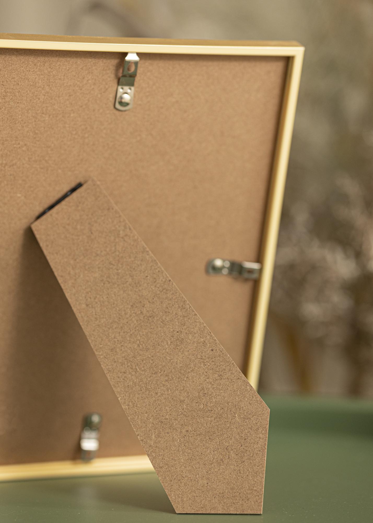 Podkreśl swoje ulubione zdjęcia z elegancją i stylem za pomocą tej ekskluzywnej złotej ramki z passe-partout. Białe passe-partout zapewnia profesjonalne obramowanie i w sposób wyrafinowany eksponuje zdjęcie w formacie A4 (21x29,7 cm). Wąska szerokość ramki wynosząca 9 mm daje ładne i dyskretne obramowanie, podczas gdy profil o głębokości 14 mm tworzy imponującą głębię.