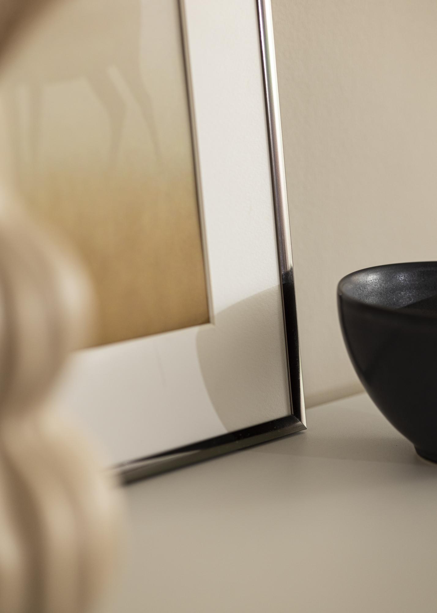 Ta elegancka rama ze stali ma błyszczącą powierzchnię i pasuje idealnie do zdjęć o rozmiarze 8x10 cm. Szerokość ramy wynosi 9 mm, a głębokość 14 mm, co nadaje jej stylowe oprawienie.