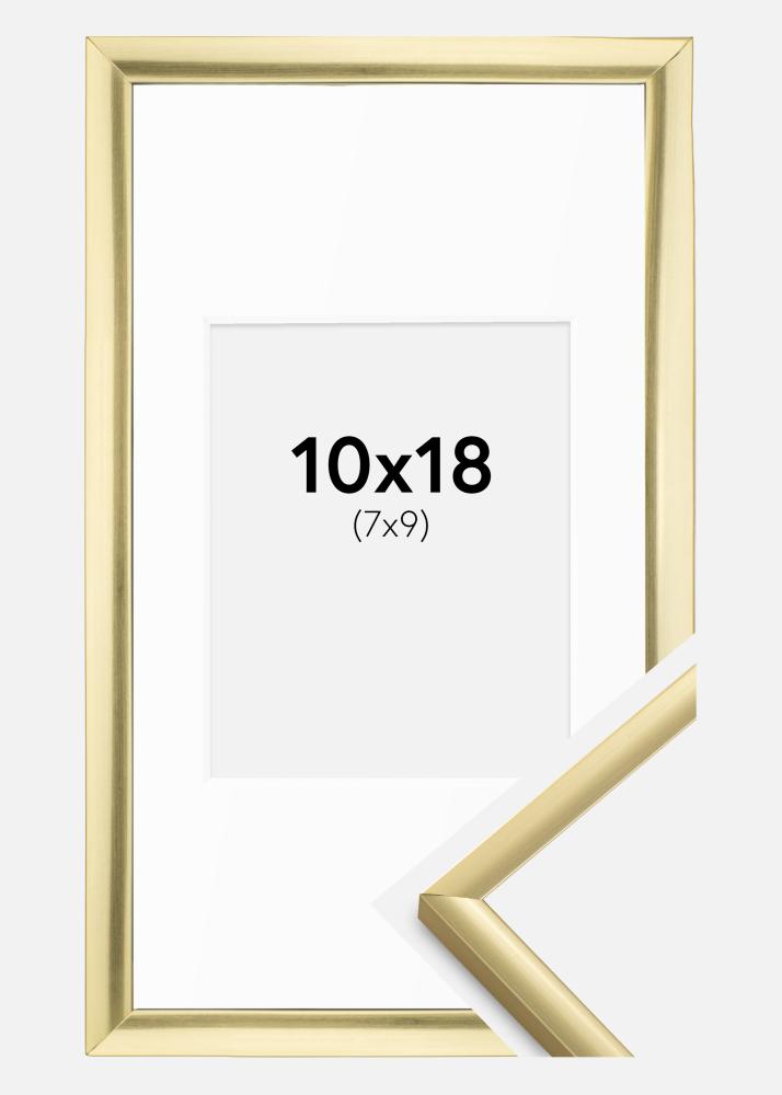 Rama ma szerokość 9 mm i głębokość 14 mm, co zapewnia dyskretną, ale stylową oprawę. Matowa powierzchnia w kolorze złotym tworzy ponadczasowy efekt, który pasuje do większości stylów wnętrz. Białe passepartout tworzy piękny kontrast i pomaga wyśrodkować obraz, dzięki czemu naprawdę przyciąga wzrok.