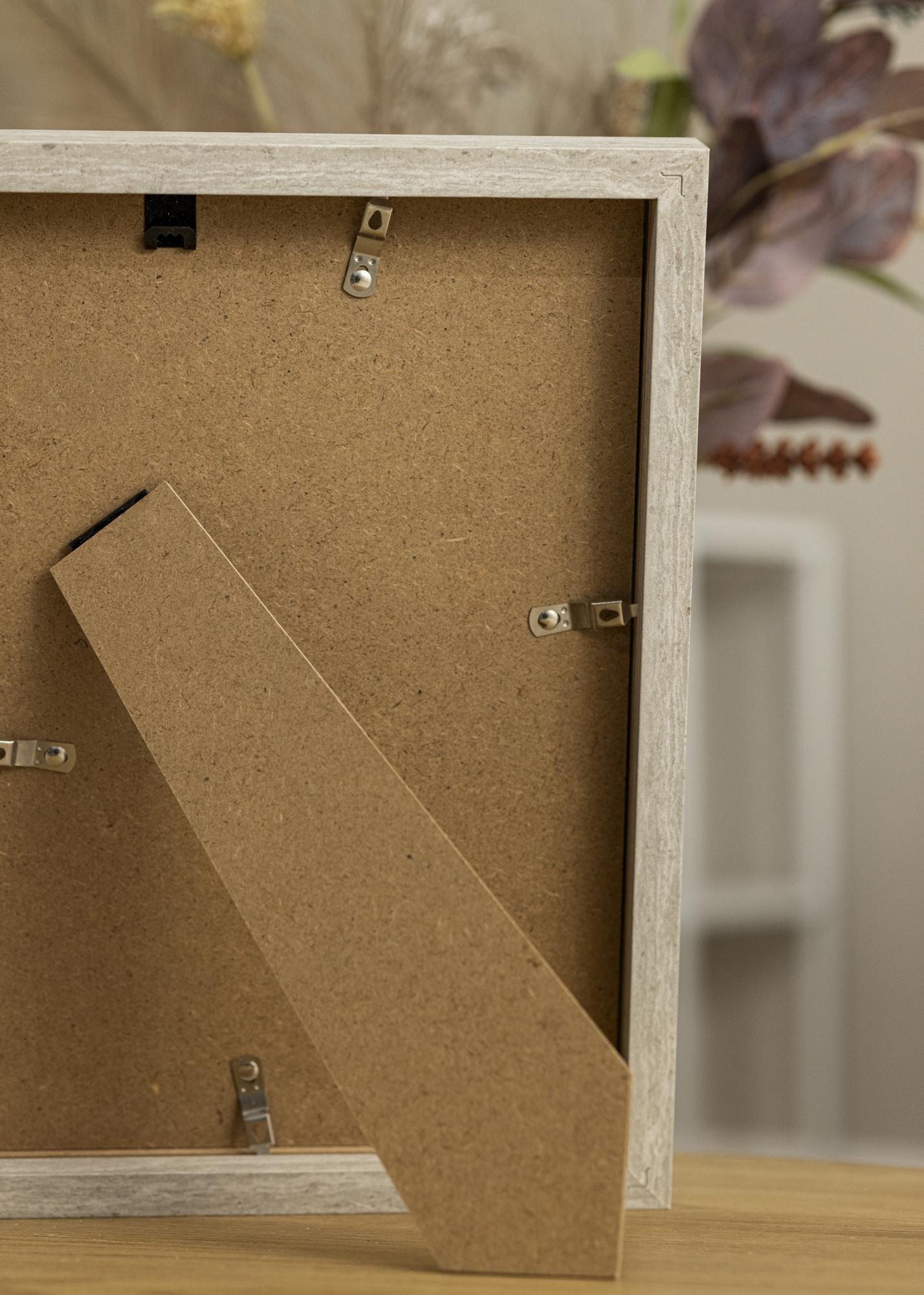 Ta rama na obrazy jest wykonana z MDF i posiada matową szarą powierzchnię z piękną strukturą drewna. Szkło ramy to prawdziwe szkło. Zdjęcia i passepartout montuje się od tylnej strony ramy. Wystarczy obrócić metalowe klipsy, które trzymają tylną część i umieścić w środku swoje motywy.