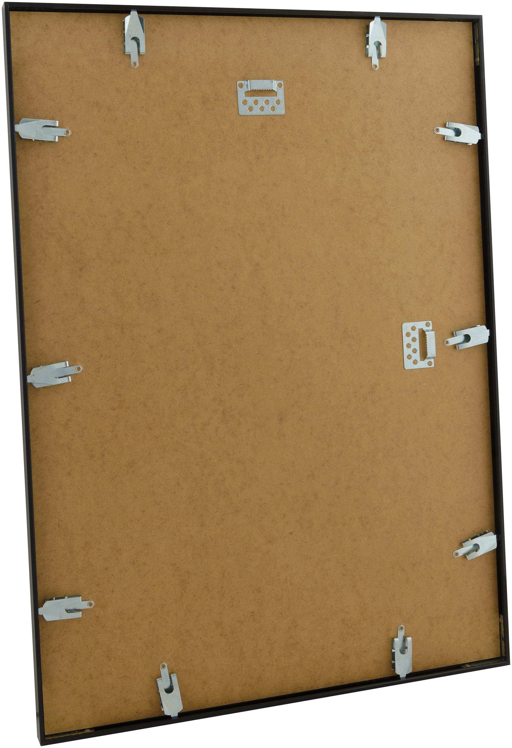 Elegancka ramka premium z błyszczącą, cienką czarną listwą, która doskonale pasuje do nowoczesnego, minimalistycznego wnętrza. Powierzchnia ramki i minimalistyczne wrażenie smukłego designu sprawiają, że idealnie nadaje się do graficznych plakatów i czarno-białych fotografii. Ramka do obrazów jest wykonana z aluminium i dostępna w wielu różnych rozmiarach, co sprawia, że jest to świetna opcja, gdy chce się stworzyć ścianę galerii z obrazami w różnych formatach, które są spójne dzięki wyborowi ram.