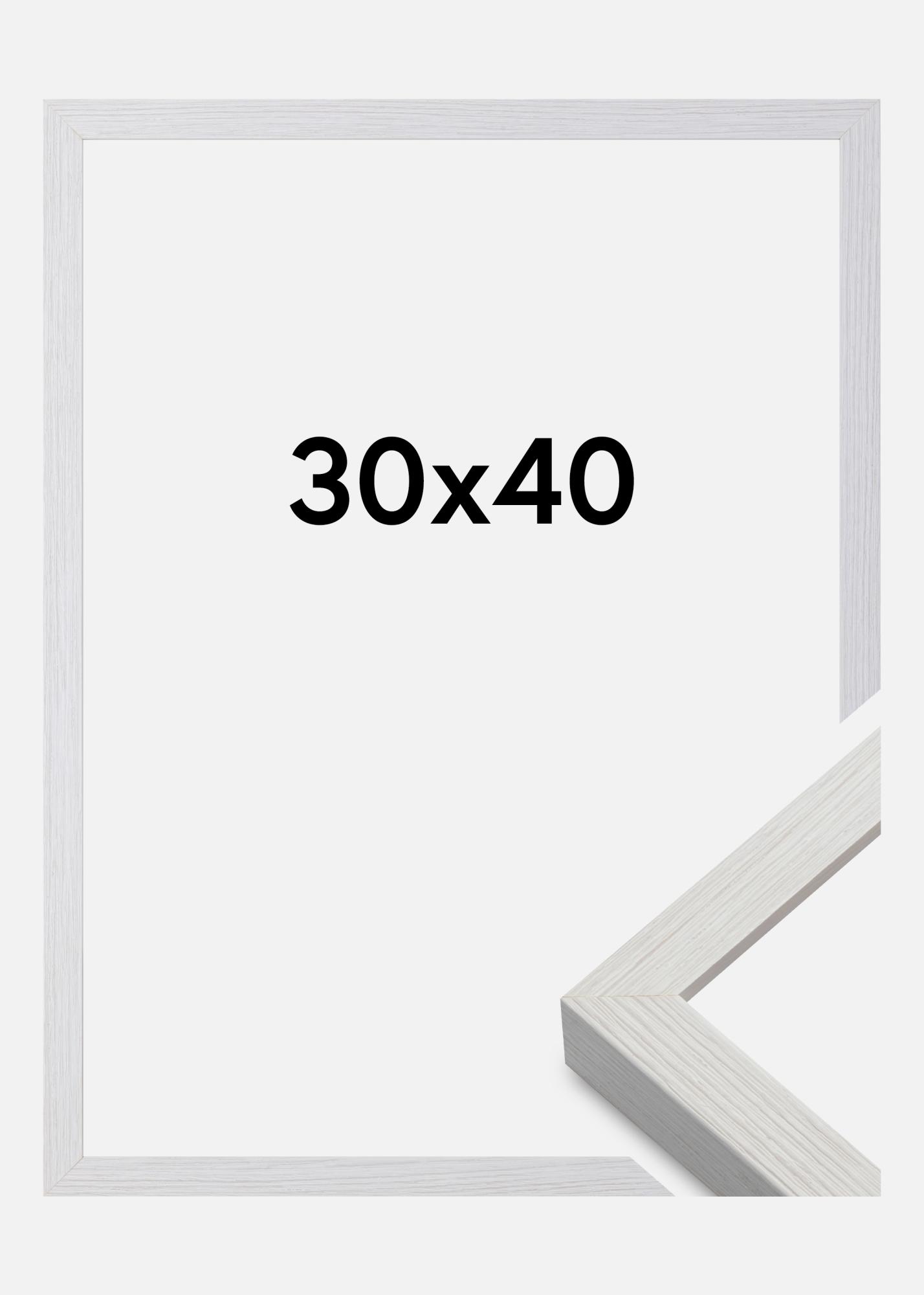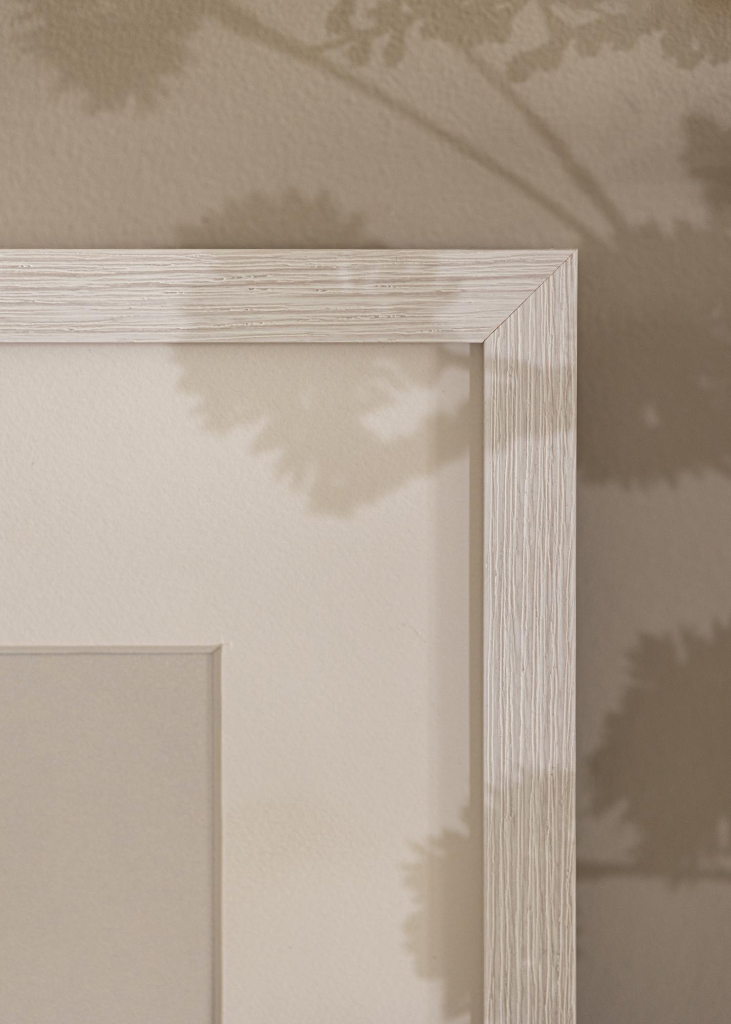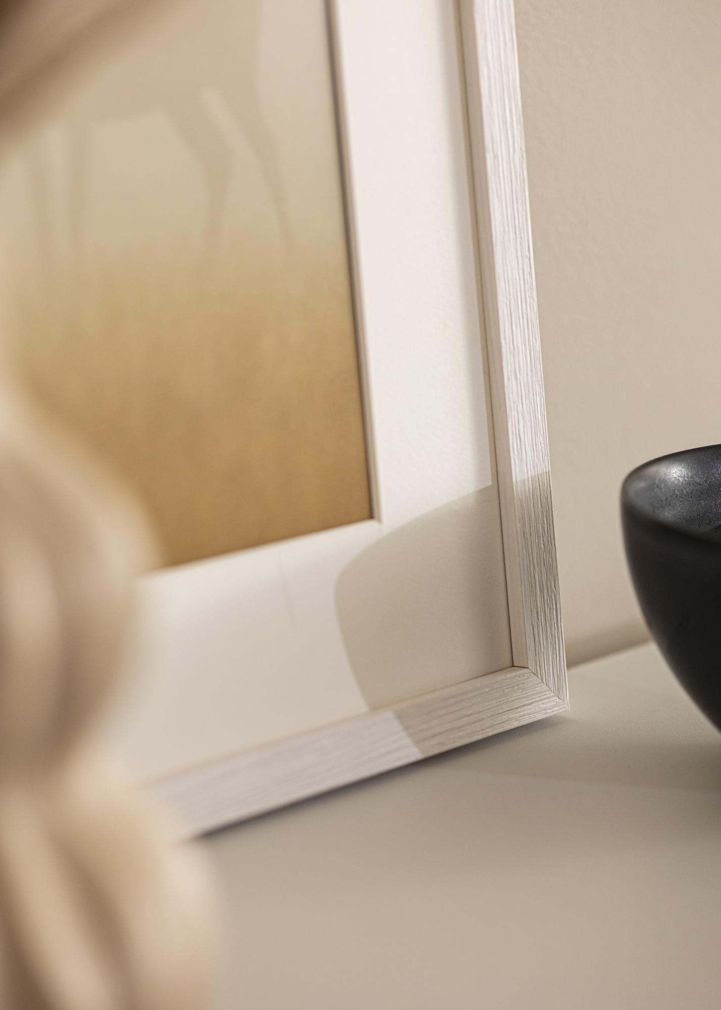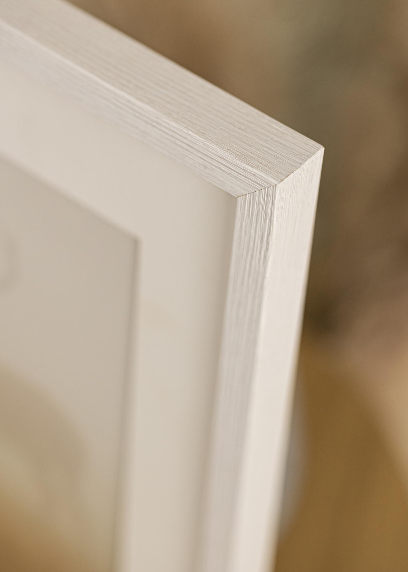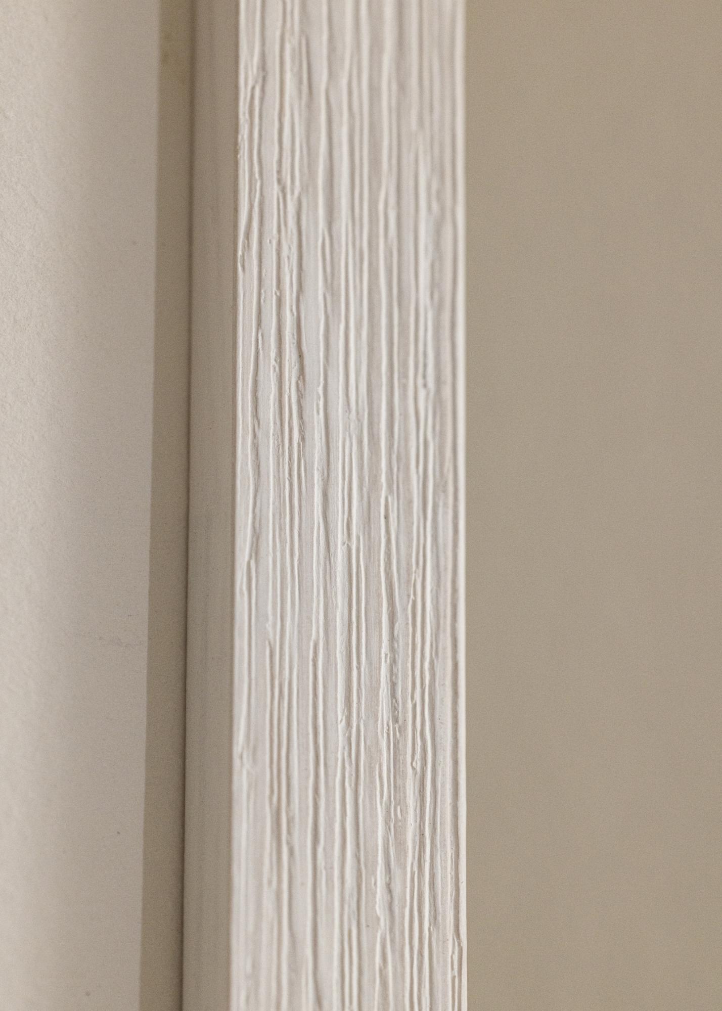 Elegancka biała drewniana rama o wysokiej jakości i laserowej strukturze, gdzie widoczne są słoje drewna. Wąski listewka ramki sprawdza się równie dobrze w nowoczesnym stylu wystroju wnętrz, jak i w rustykalnej aranżacji, gdzie pasuje laserowany biały kolor. Rama jest doskonała do wykorzystania zarówno do plakatów, akwareli i fotografii i jest dostępna w różnych rozmiarach. Połącz ramkę z kilkoma fotografiami w różnych formatach i powieś razem, aby stworzyć stylową ścianę z obrazami, która stanie się punktem centralnym na ścianie.