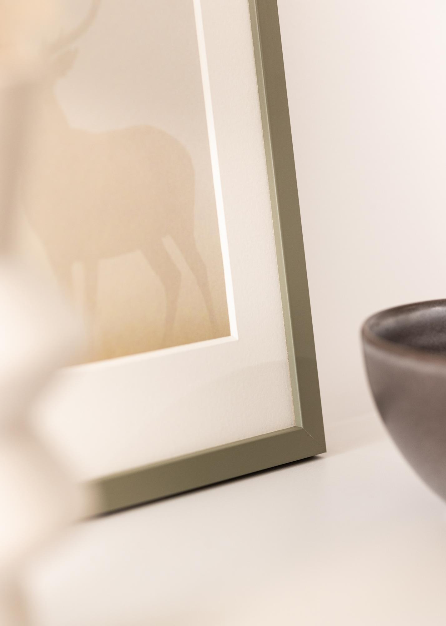 Ta stylowa rama pochodzi od duńskiej firmy Incado i jest częścią serii NordicLine. Rama ma minimalistyczny, kwadratowy profil z szerokością listwy 15 mm i taką samą głębokością listwy. Daje to ramie sympatyczną symetrię i solidne wrażenie bez zabierania jej smukłego wyglądu. Rama jest foliowana z matową powierzchnią w spokojnym i harmonijnym odcieniu zieleni naturalnej.