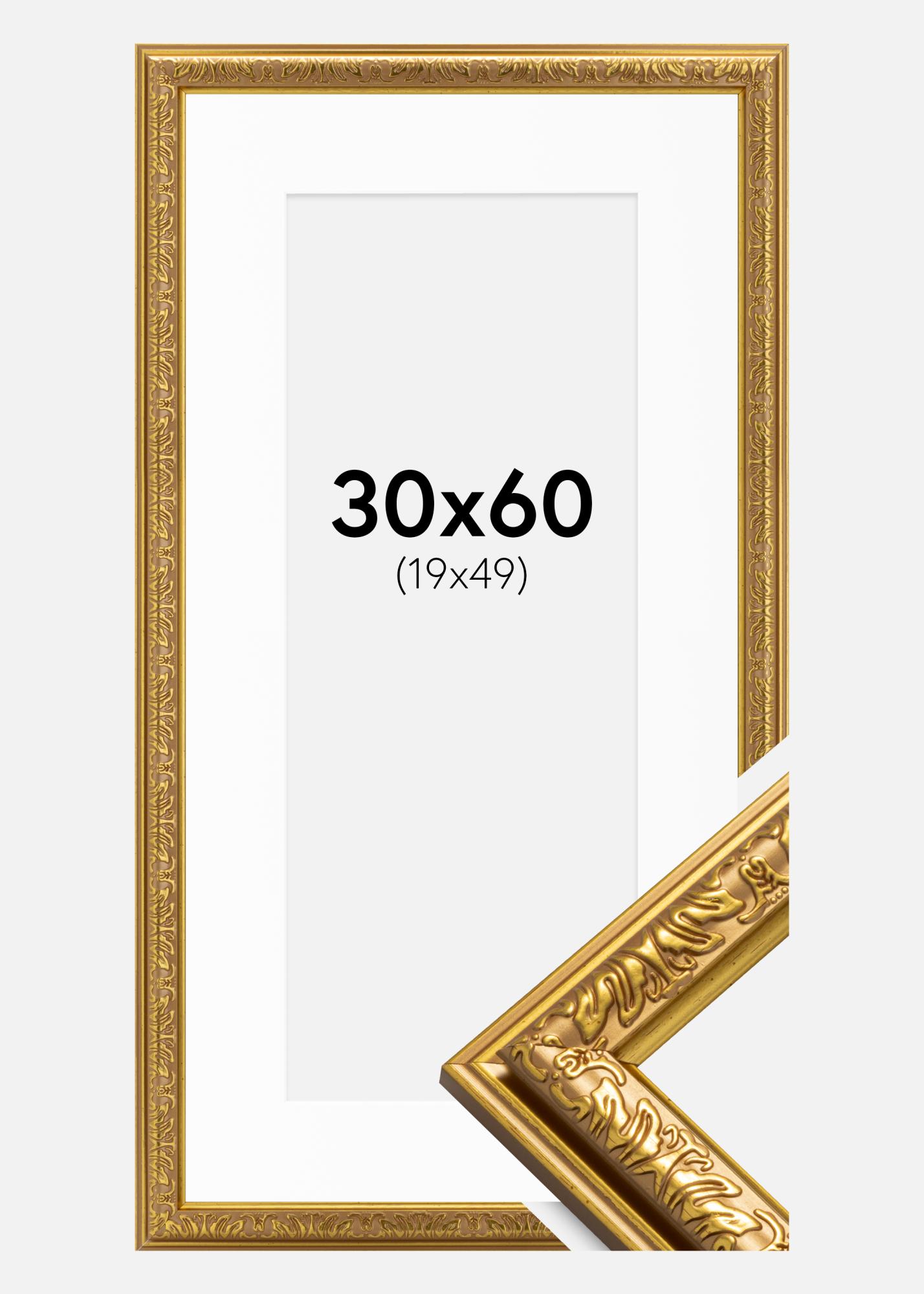 Rama Nostalgia Złoty 30x60 cm - Passe-patrout Biały 20x50 cm