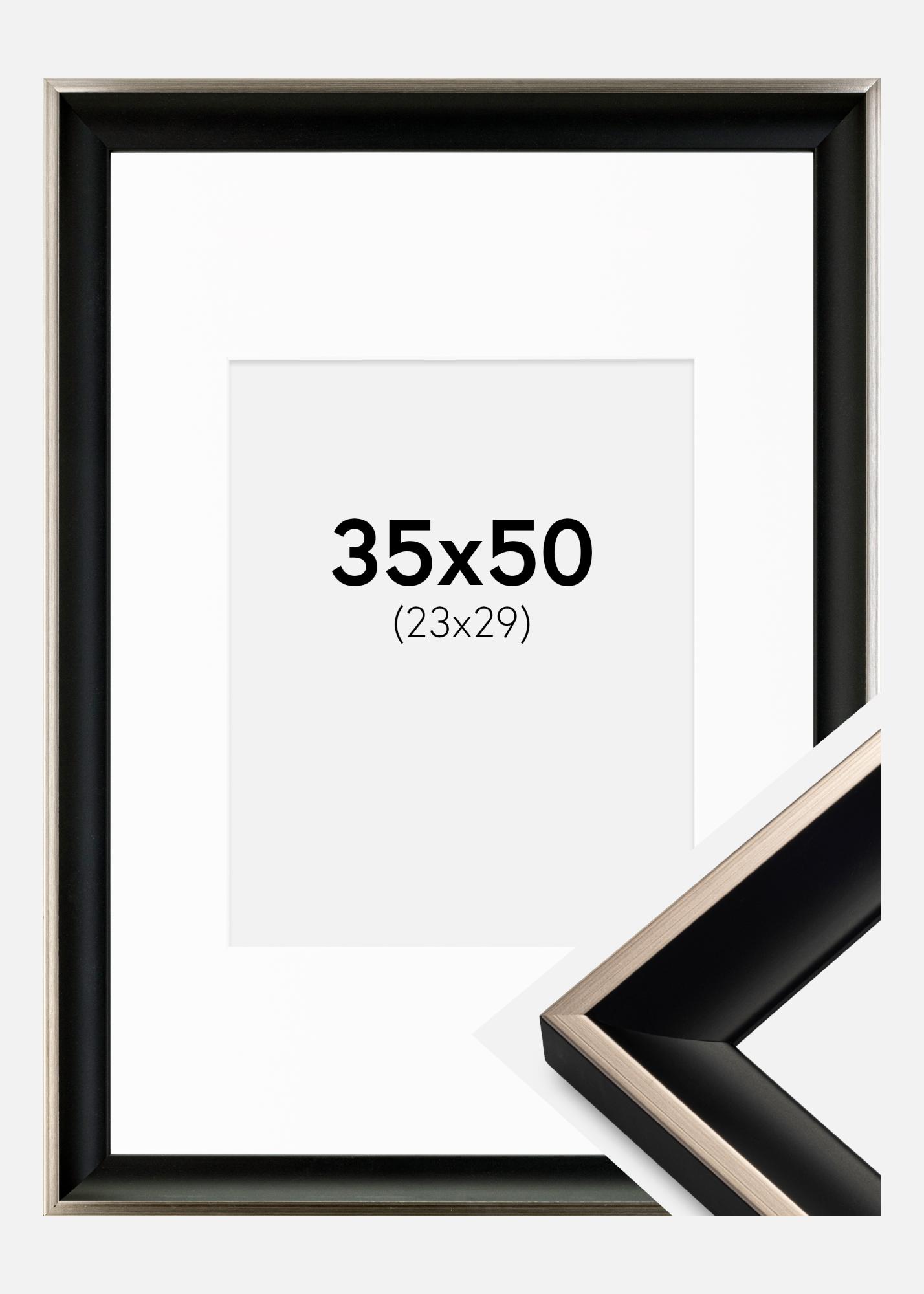 Rama Öjaren Czarno-Srebrny 35x50 cm - Passe-patrout Biały 24x30 cm
