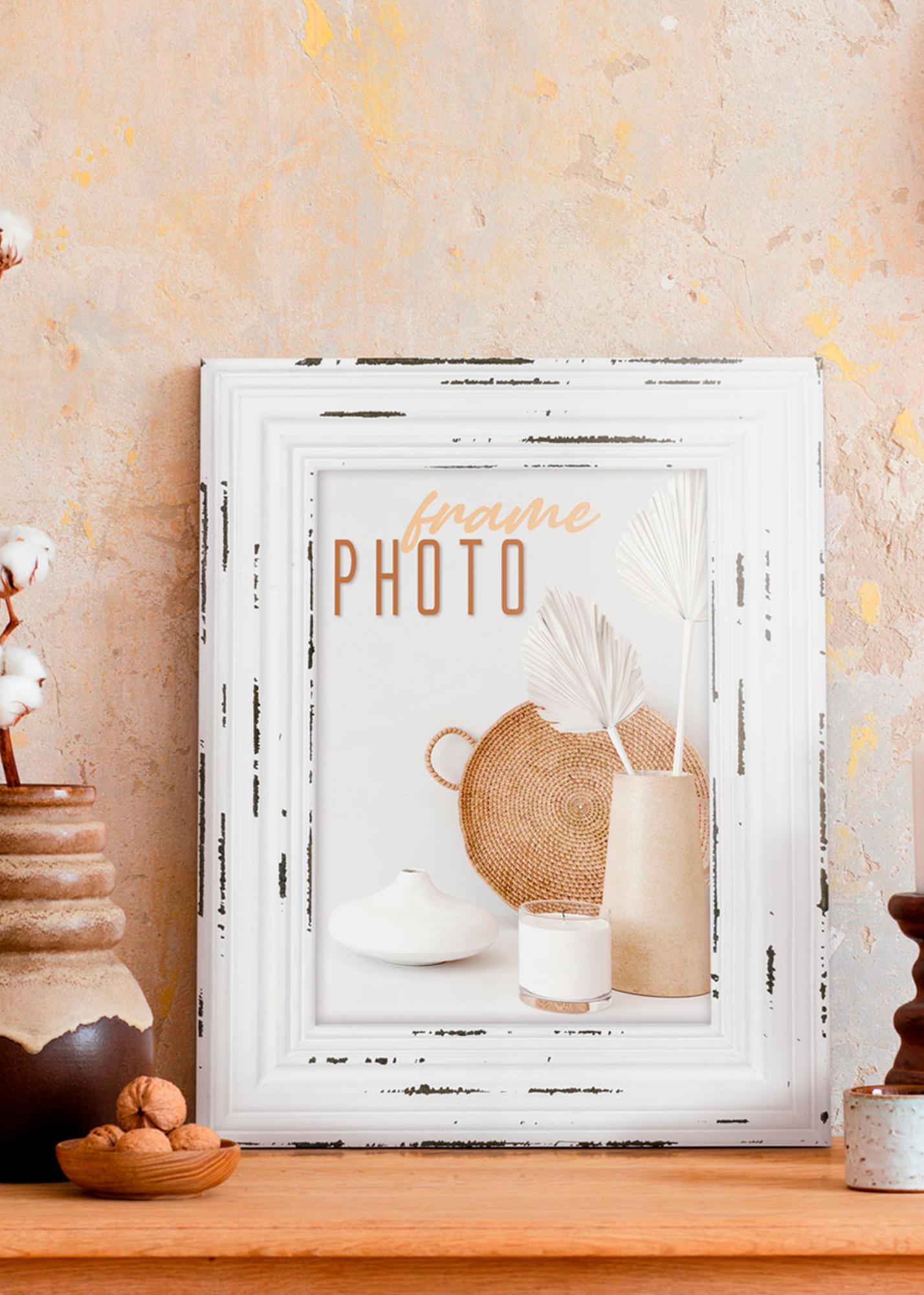 Nadaj wspomnieniom wyjątkową oprawę dzięki tej urokliwej ramce na zdjęcia w stylu vintage. Jej wymiary 15x20 cm sprawiają, że idealnie podkreśla ulubione fotografie. Zniszczona biała powierzchnia, uzupełniona ciemnymi elementami, nadaje autentyczny klimat minionych czasów oraz wzbogaca charakter Twojego wnętrza.