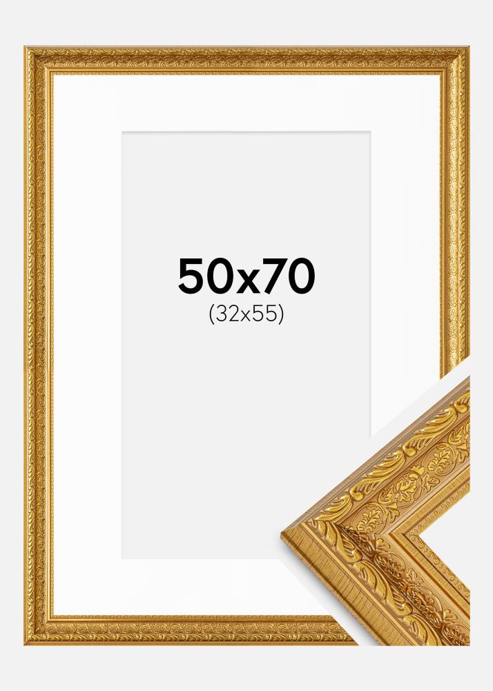 Ramka Ornate Złoto 50x70 cm - Passe-partout Biały 33x56 cm