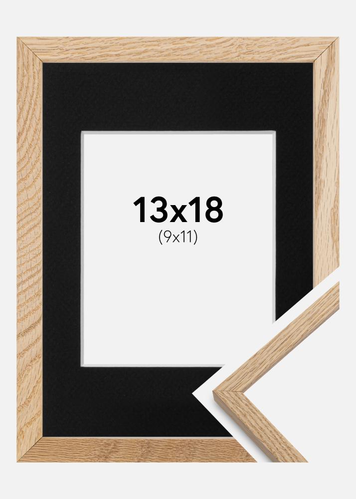 Ramka ma szerokość 12 mm i głębokość 18 mm, co zapewnia solidne, a jednocześnie dyskretne obramowanie. Czarny passepartout dopełnia matowy kolor dębowy ramki i tworzy wizualny kontrast, który sprawia, że obraz naprawdę się wyróżnia. Dzięki dołączonym metalowym wieszakom z tyłu można łatwo zawiesić ramkę zarówno w poziomie, jak i w pionie, co daje elastyczność przy umieszczaniu na ścianie.