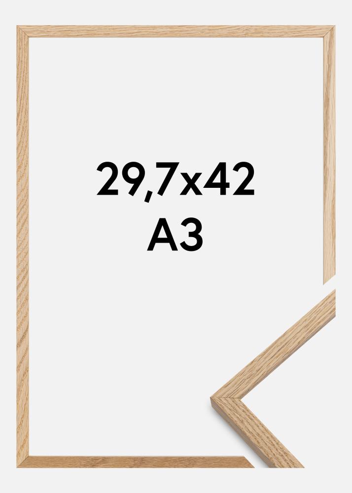 Solidna rama dębowa w formacie A3 z kwadratowym profilem ramy. Rama jest dostarczana z krystalicznie czystym szkłem akrylowym, które jest nietłukące, co jednocześnie obniża wagę ramy.