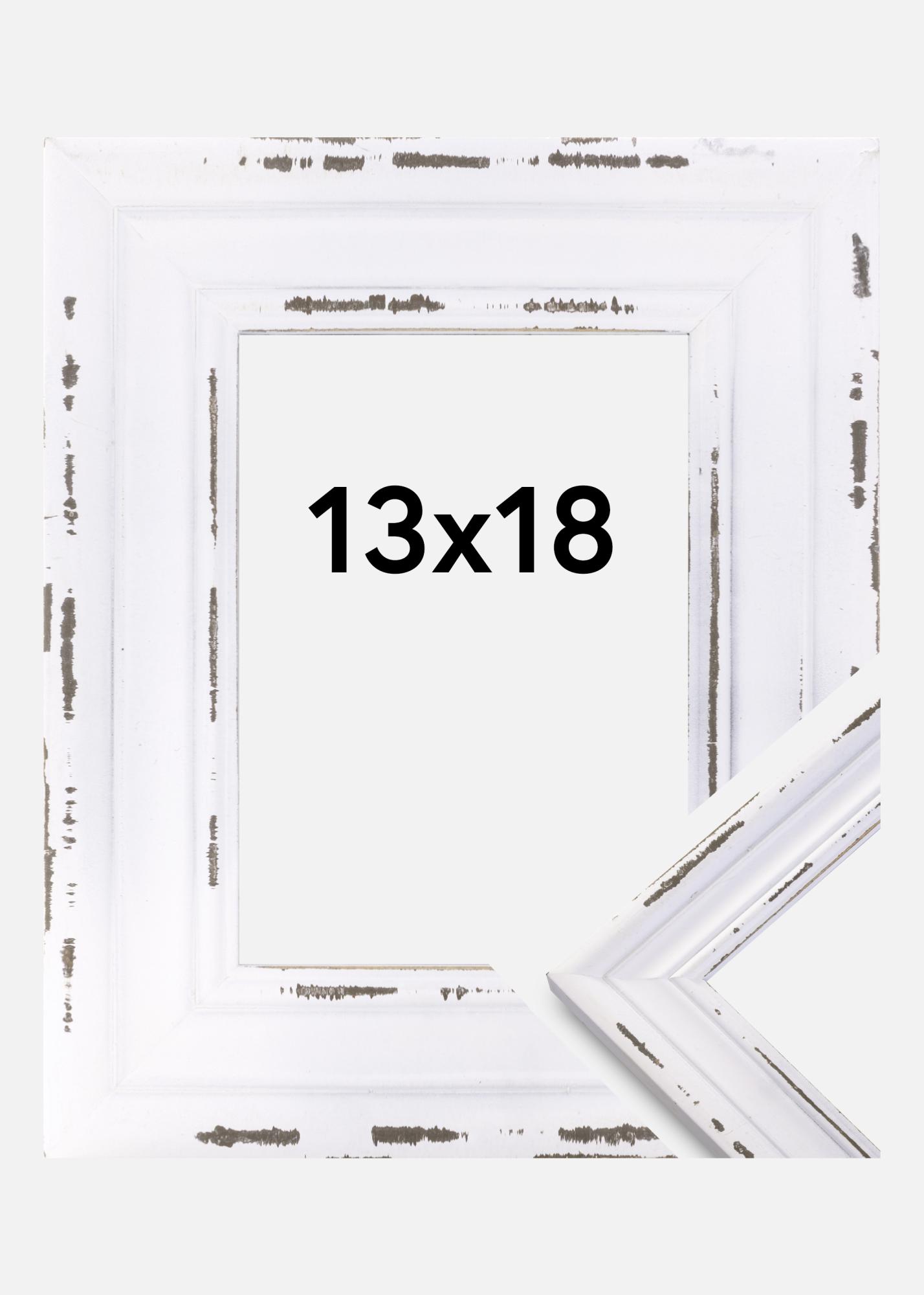 Jeśli nie masz szczęścia odziedziczyć starych oprawionych fotografii rodzinnych, możesz stworzyć te obrazy samodzielnie. Tutaj mamy dekoracyjnie postarzaną ramkę, która doskonale nadaje się do tego celu! Ramka jest biała z klasycznie profilowanym listwą i wytartymi częściami, przez które widać drewno. Wybierz spośród wielu różnych rozmiarów!