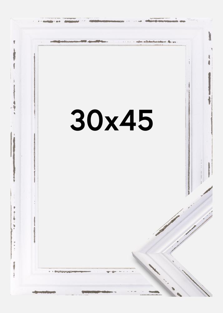 Jeśli nie masz szczęścia odziedziczyć starych oprawionych fotografii rodzinnych, musisz stworzyć te obrazy samodzielnie. Oto dekoracyjnie zużyta ramka, która doskonale nadaje się do tego celu! Ramka jest biała, z klasycznie profilowaną listwą i przetartymi miejscami, przez które przebija drewno. Wybierz spośród różnych rozmiarów!