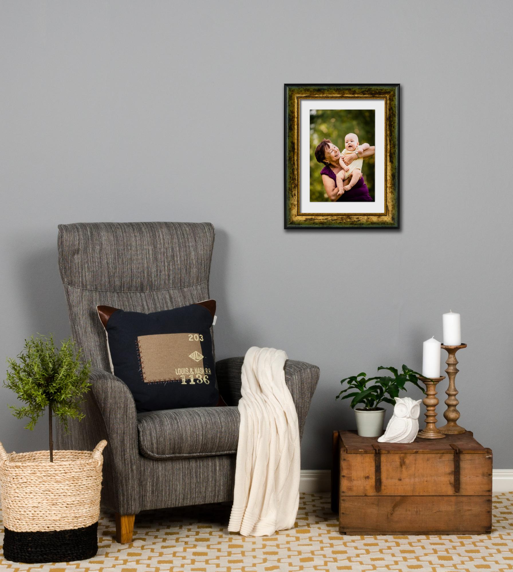 Rzadko widujemy tak ekscytujący design ramki na zdjęcia! Ta znakomita ramka ma czarne krawędzie i złotą powierzchnię z przetartymi detalami. Umieść swoje najpiękniejsze zdjęcia w tej ramce, a uzyskasz charakterystyczny obrazek, który doskonale pasuje zarówno do wnętrza w starym stylu, jak i do bohemy. Ponieważ jest produkowana w naszym własnym warsztacie na podstawie Twoich wskazówek dotyczących wymiarów, możesz być pewien, że pasuje dokładnie tam, gdzie chcesz.