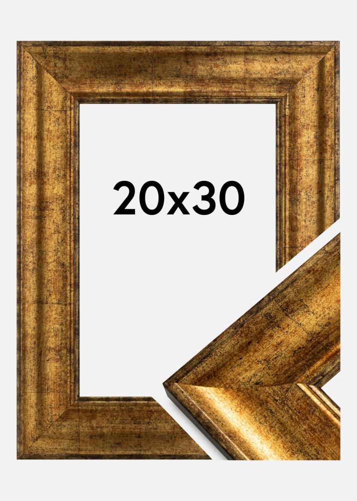 Saltsjöbaden Złota dostępna jest w kilku rozmiarach, z których ta rama pasuje do zdjęć o rozmiarze 20x30 cm.