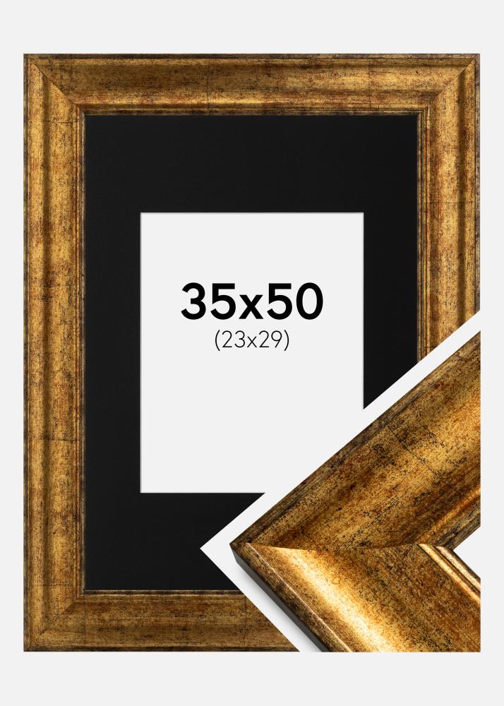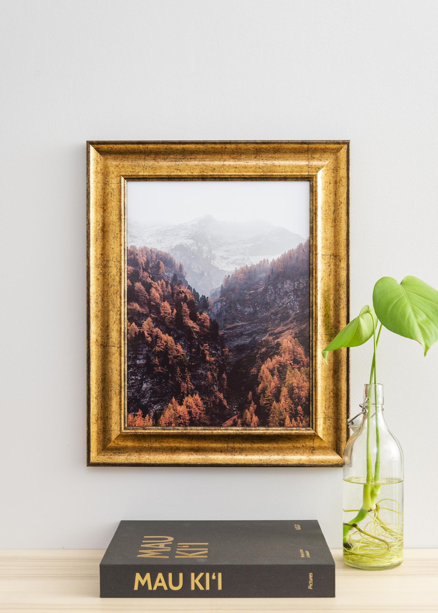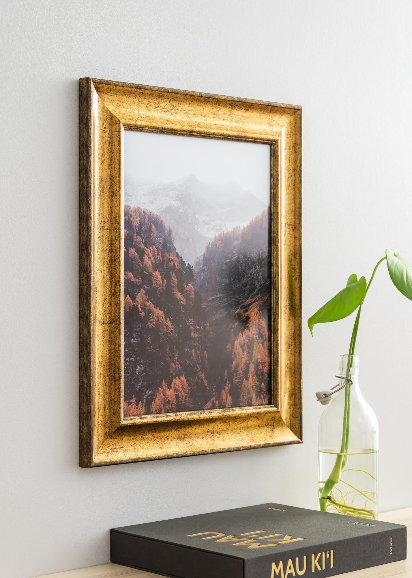 Przekształć swoje dzieło sztuki lub zdjęcie w elegancki punkt centralny dzięki naszej złotej ramie z czarnym passe-partout. Matowy złoty odcień ramy uzupełnia czarne passe-partout, tworząc wyrafinowany kontrast, który podkreśla twoje zdjęcie w rozmiarze 24x30 cm. Hojna szerokość 64 mm zapewnia solidne i luksusowe wrażenie, podczas gdy głębokość 23 mm dodaje charakterystyczny profil.