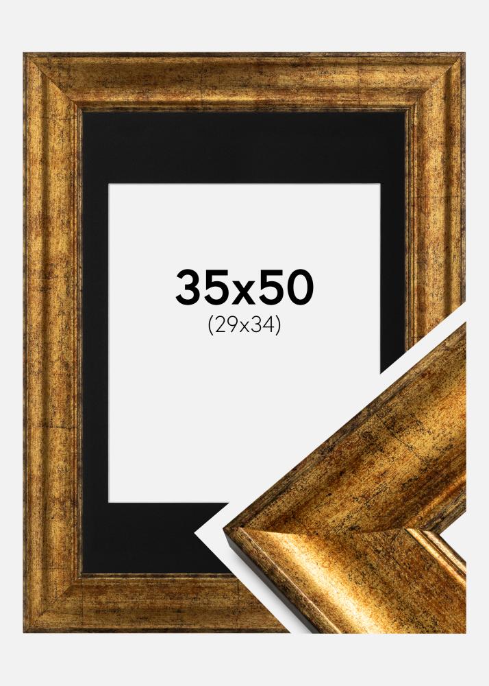 Przekształć swój dom w osobistą galerię sztuki dzięki tej eleganckiej złotej ramie z czarnym passepartout. Rama, która ma 64 mm szerokości i 23 mm głębokości, tworzy imponujące i wyraziste wrażenie na ścianie. Matowy odcień złota idealnie uzupełnia czarne passepartout, tworząc wyrafinowany kontrast, który podkreśla obraz o rozmiarze 30x35 cm.