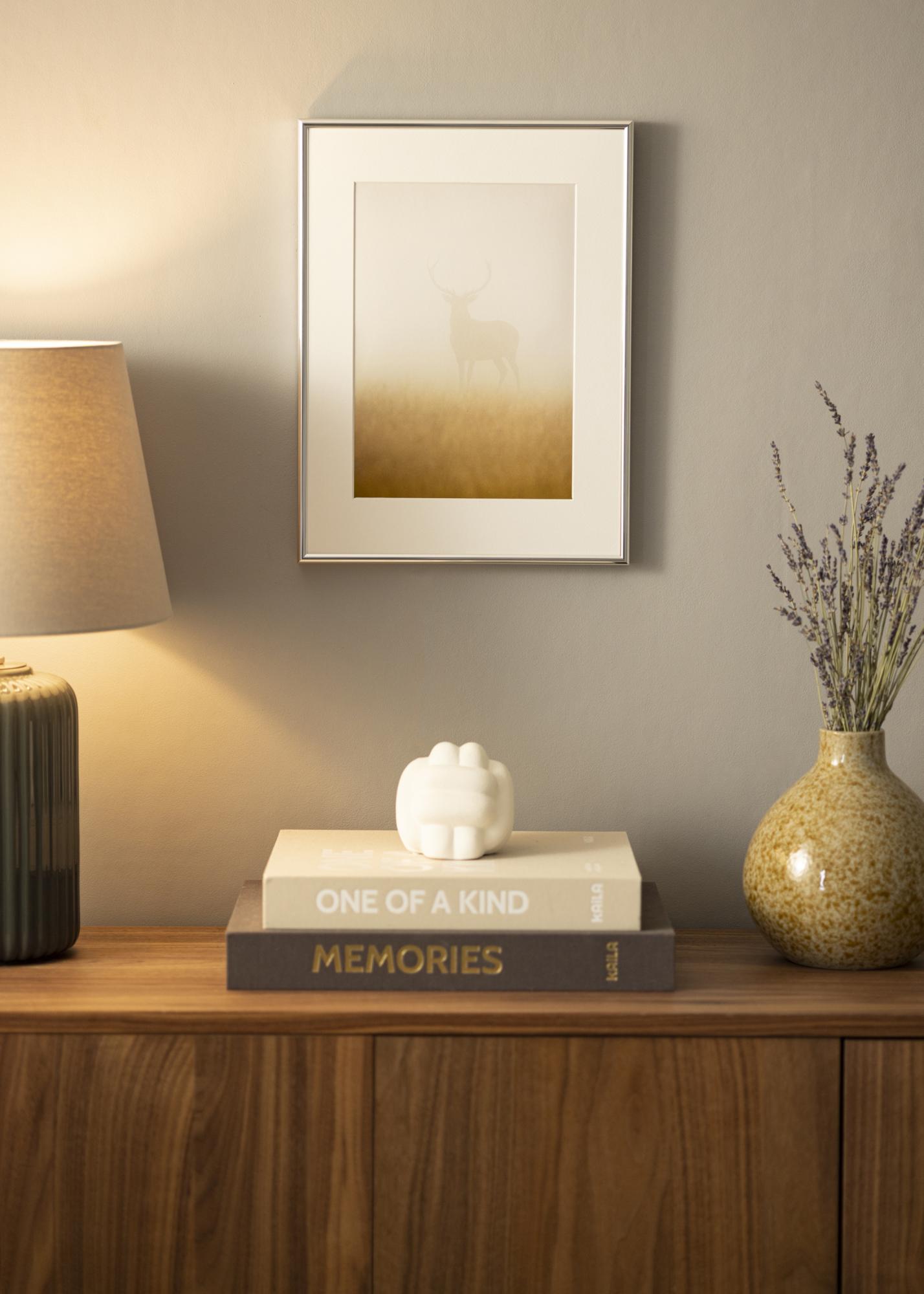 Nowoczesna srebrna ramka o wysokim połysku z matowymi bokami o głębokim profilu 26 mm. Dzięki temu motyw wychodzi ze ściany, tworząc atrakcyjny efekt 3D. Idealna, gdy szukasz prostej srebrnej ramki, która nada Twoim zdjęciom elegancką oprawę.