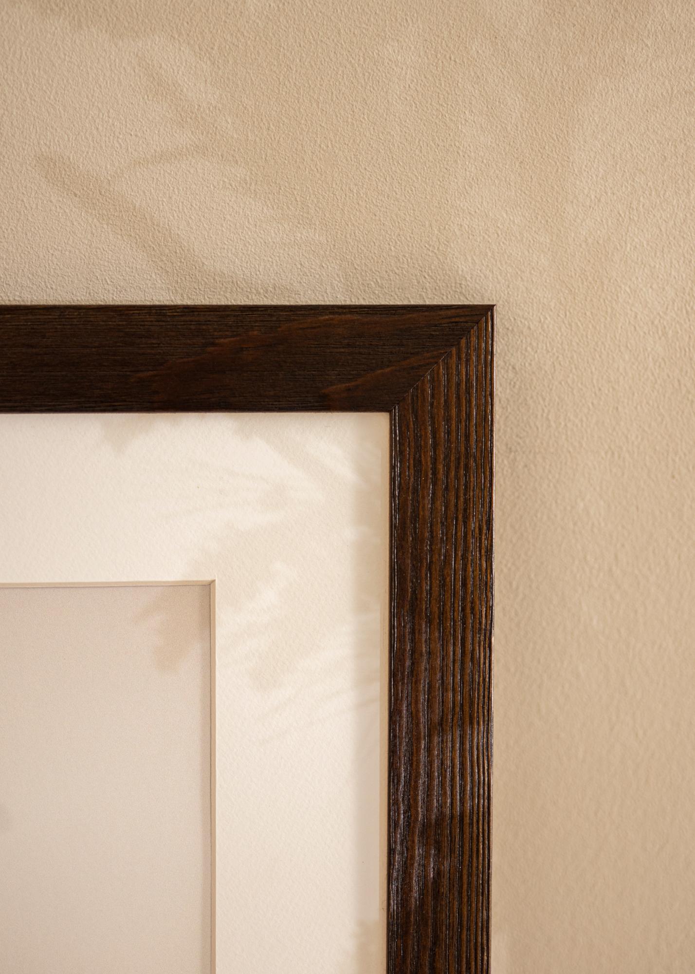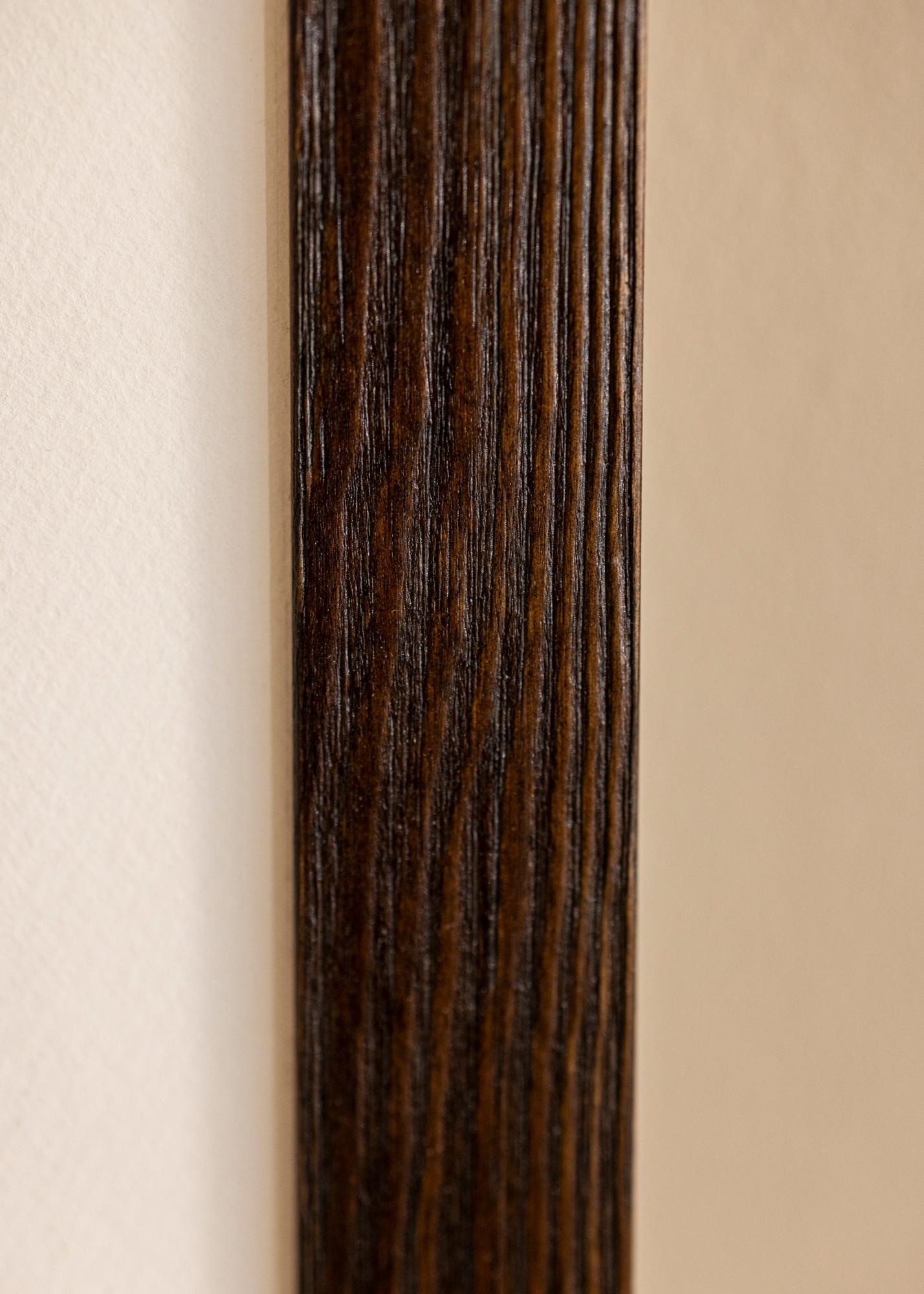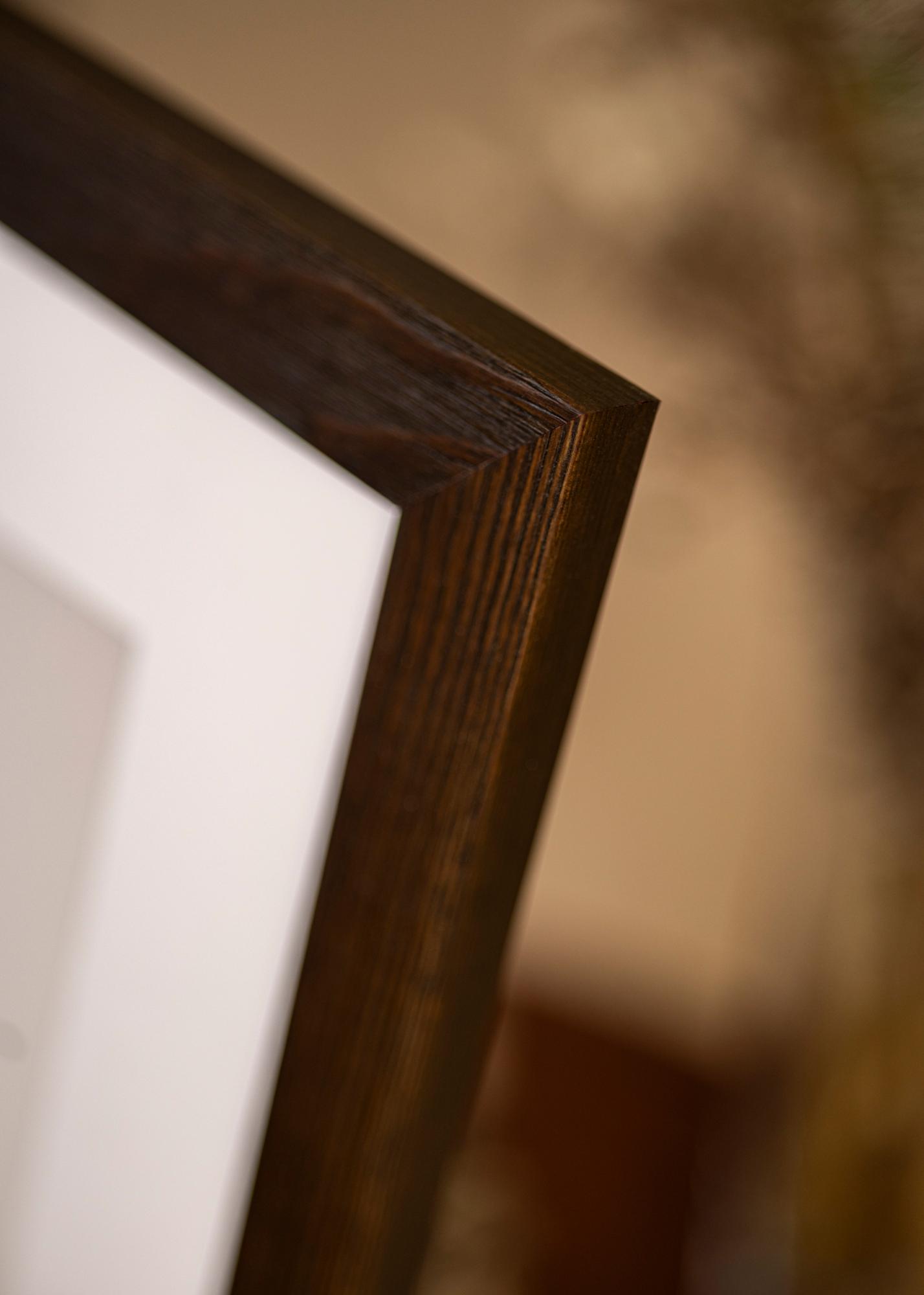 Solidna brązowa rama drewniana z widocznymi słojami drewna o szerokim profilu. Doskonała, gdy szukasz ciemnej drewnianej ramy z naturalnym wyglądem. Idealna do zdjęć przyrodniczych i krajobrazowych.