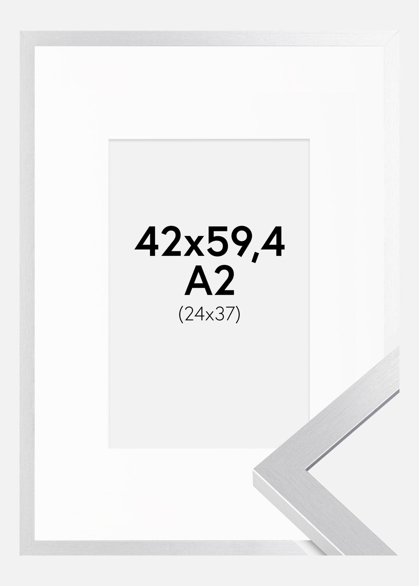 Rama Selection Srebrny 42x59,4 cm (A2) - Passe-patrout Biały 25x38 cm
