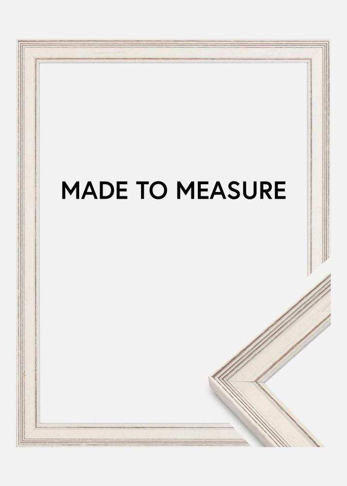 Shabby Chic Ramka na Zdjęcia Biała 35A - Dowolny rozmiar produkowany jest zgodnie z Twoimi życzeniami w naszej własnej pracowni ram. Listwa jest wykonana z drewna i poddana obróbce, aby wyglądała na starą i lekko podniszczoną.