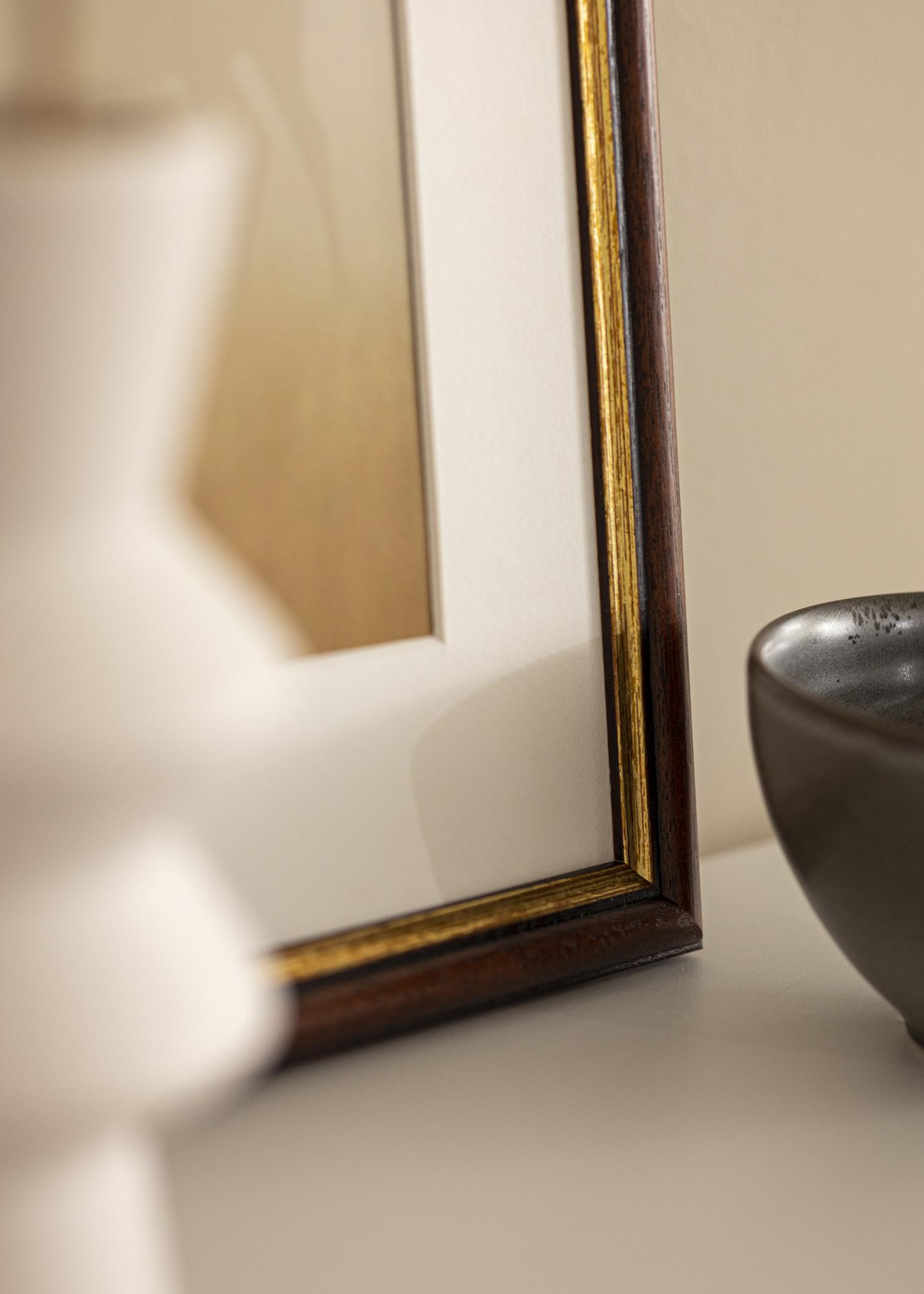 Ta elegancka rama w brązowym kolorze ma passe-partout, które pasuje do zdjęć o wielkości 34x34 cm. Szerokość ramy wynosi 24 mm, a głębokość 19 mm, co zapewnia stabilne i stylowe obramowanie.
