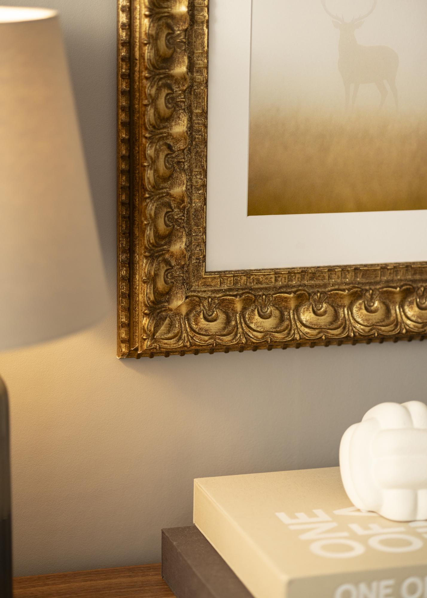 Przekształć swoje zdjęcia w dzieła sztuki z naszą ekskluzywną ramą na obrazy Skokloster Złoto. Ta ramka na zdjęcia została zaprojektowana, aby nadać Twoim wspomnieniom elegancką oprawę dzięki klasycznemu złotemu wykończeniu i bogato zdobionemu profilowi. Antyczny wygląd wzmocniony jest przez patynowaną powierzchnię, co nadaje ramie ponadczasowy i wyrafinowany charakter, który doskonale pasuje zarówno do nowoczesnych, jak i tradycyjnych wnętrz.