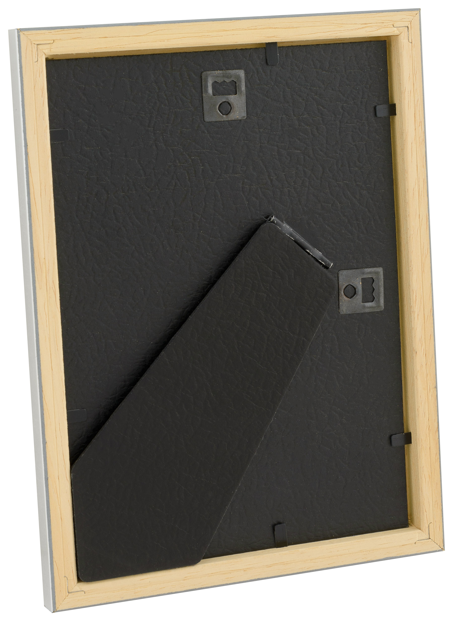 Umieść swoje zdjęcie, obraz lub plakat w tej stylowej ramce! Ramka wykonana jest z drewna pomalowanego na srebrno i wyposażona w szkło antyrefleksyjne. Tylna część i nóżka są pokryte imitacją czarnej skóry, co nadaje dodatkowe luksusowe wrażenie.