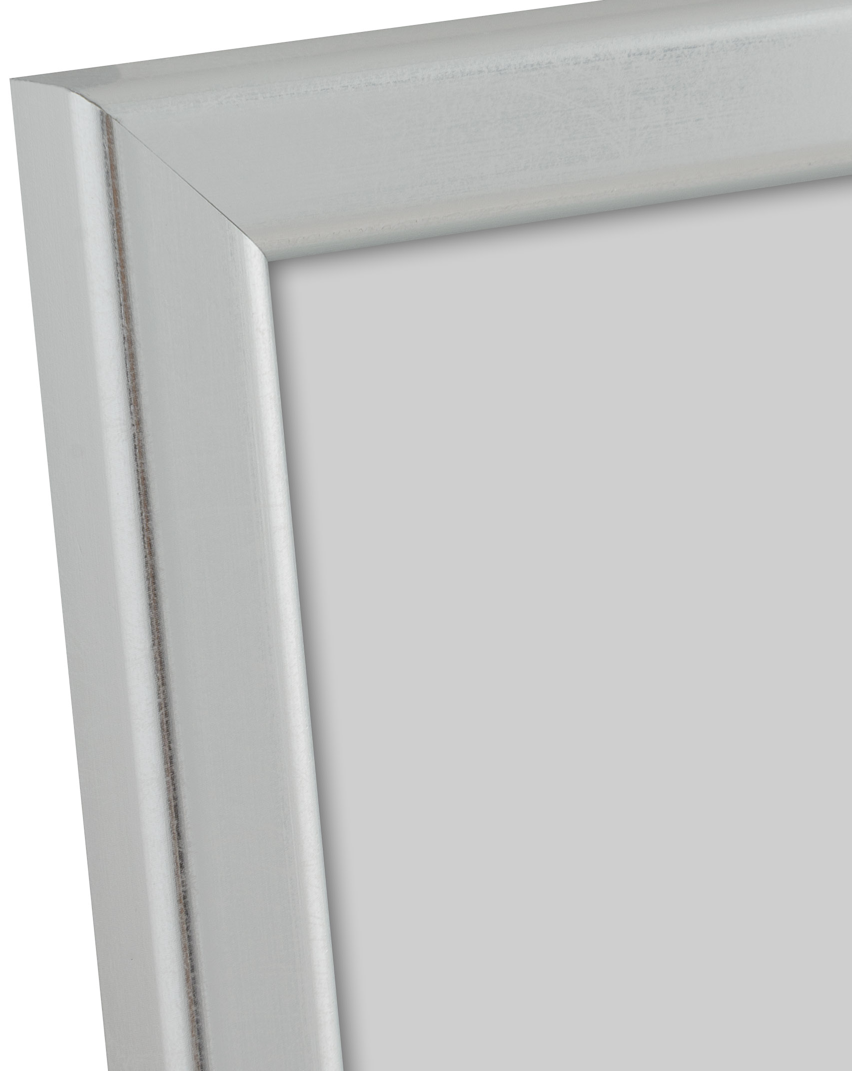 Umieść swoje zdjęcie, malarstwo lub plakat w tej stylowej ramce! Ramka wykonana jest z drewna pomalowanego na srebrno i posiada szkło antyrefleksyjne. Tylna część i nóżka są pokryte czarną imitacją skóry, co daje dodatkowe luksusowe wrażenie.