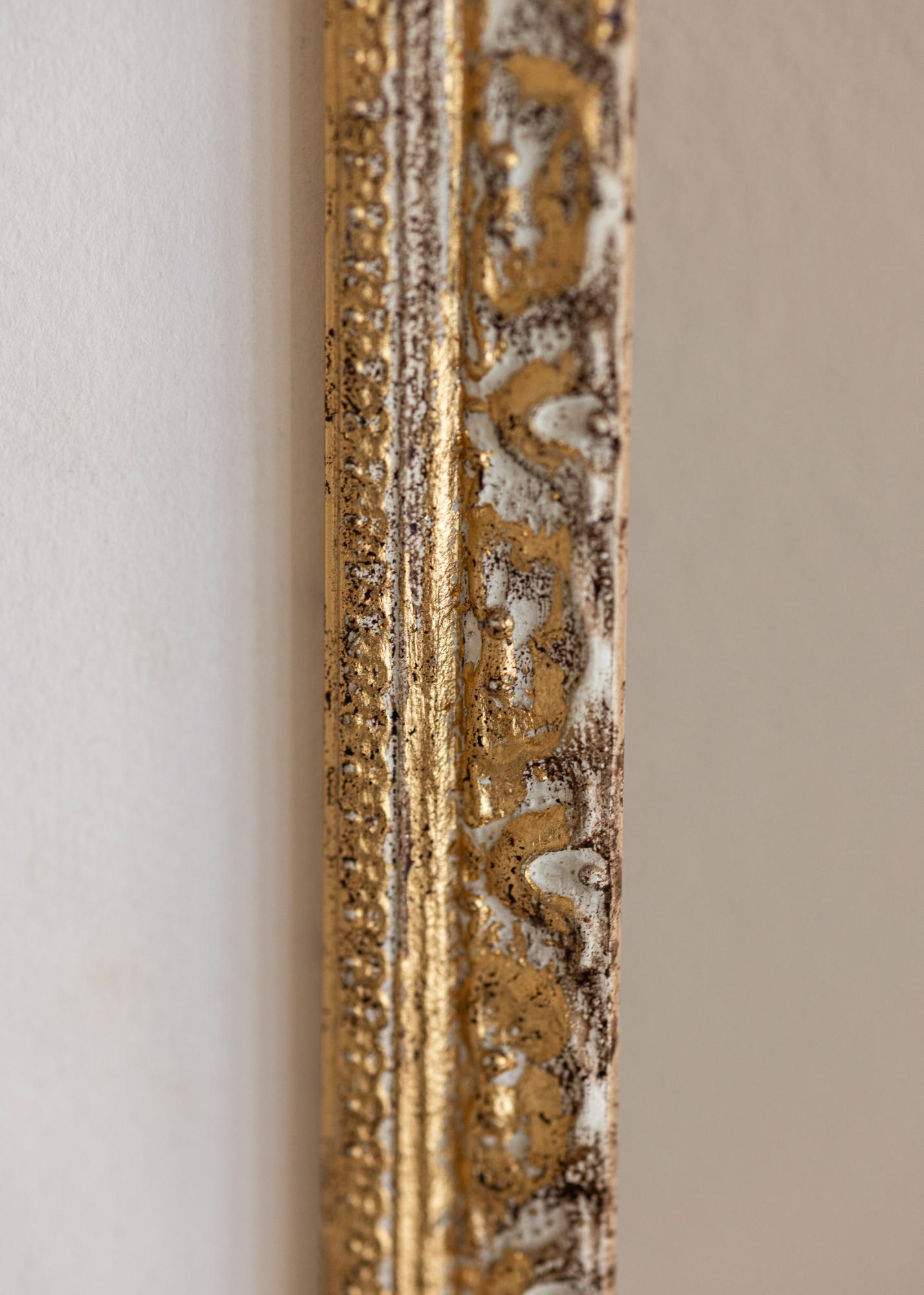 Stylowa retroinspirowana rama do obrazów wysokiej jakości z ekskluzywnym wzornictwem w kolorze srebra i złota, wykonana we Włoszech. Daje dodatkowe podkreślenie twoim najpiękniejszym zdjęciom, zwłaszcza w połączeniu z passepartout (nie wchodzi w skład zestawu).