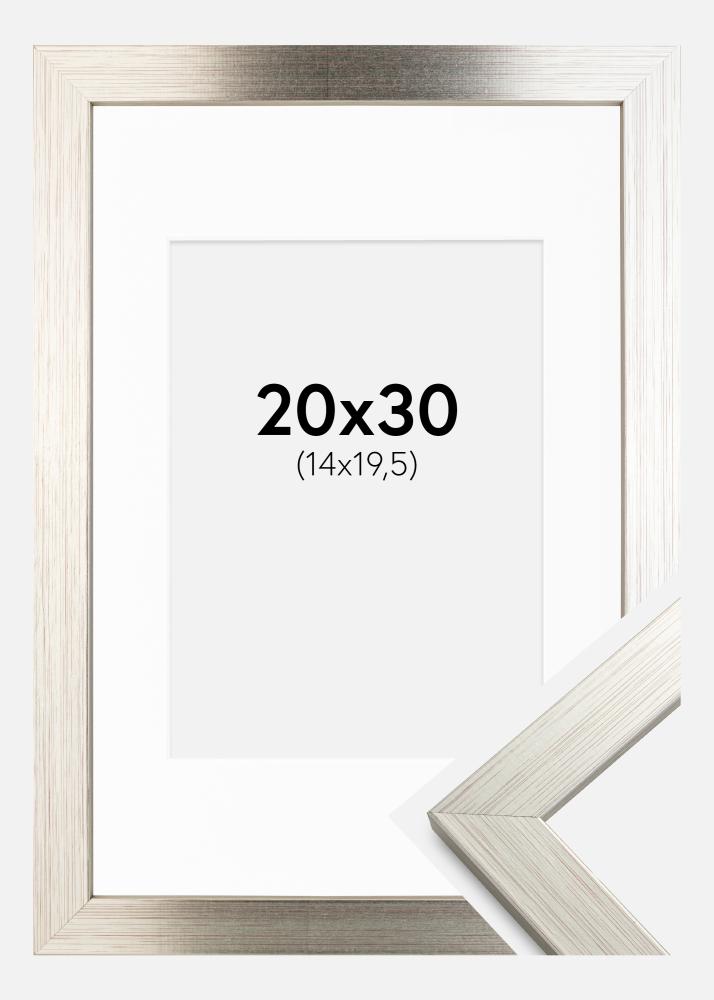 Rama Srebrny Wood 20x30 cm - Passe-patrout Biały 15x21 cm (A5)