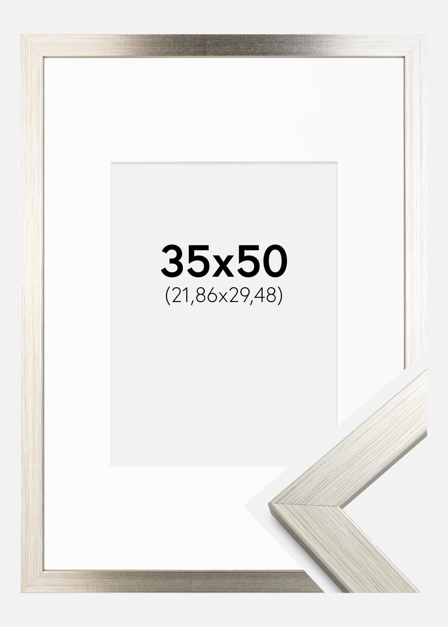 Rama Srebrny Wood 35x50 cm - Passe-patrout Biały 9x12 inches