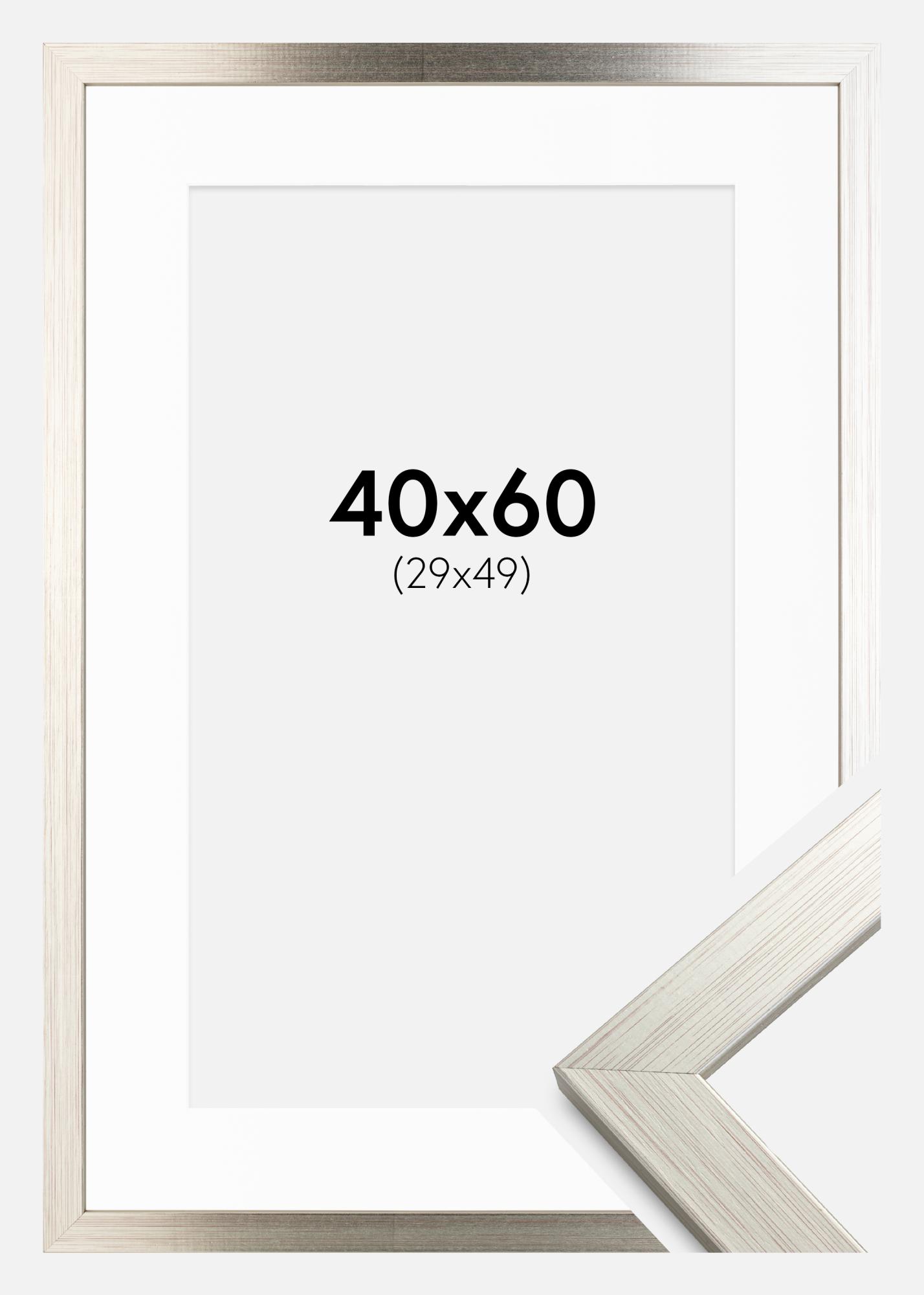 Rama Srebrny Wood 40x60 cm - Passe-patrout Biały 30x50 cm