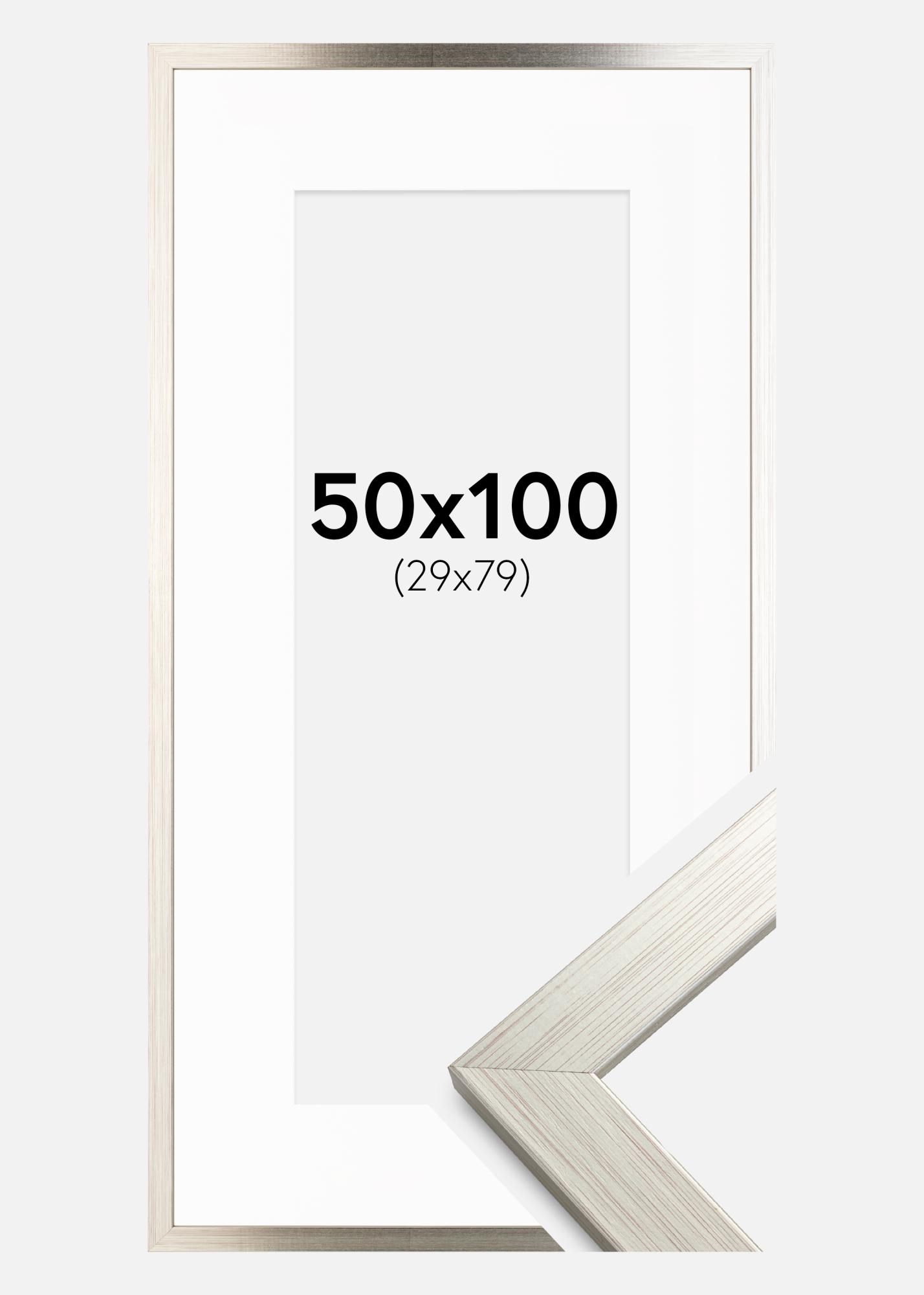 Rama Srebrny Wood 50x100 cm - Passe-patrout Biały 30x80 cm